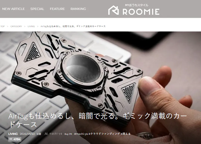 さらに ライフスタイルメディア ROOMIE では、「デザイン性と利便性を兼ね備えた次世代カードケース」として紹介され、洗練されたデザインと日常使いでの快適さに注目が集まっています。