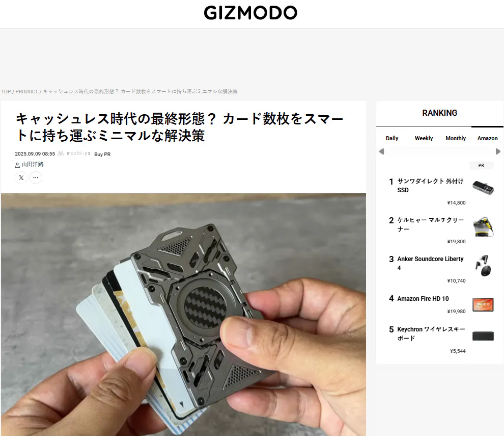 おかげさまで、当プロジェクトのスマートカードケース 「Grow Wallet」 が、2025年9月9日に ギズモード・ジャパン にて 再度掲載されました!