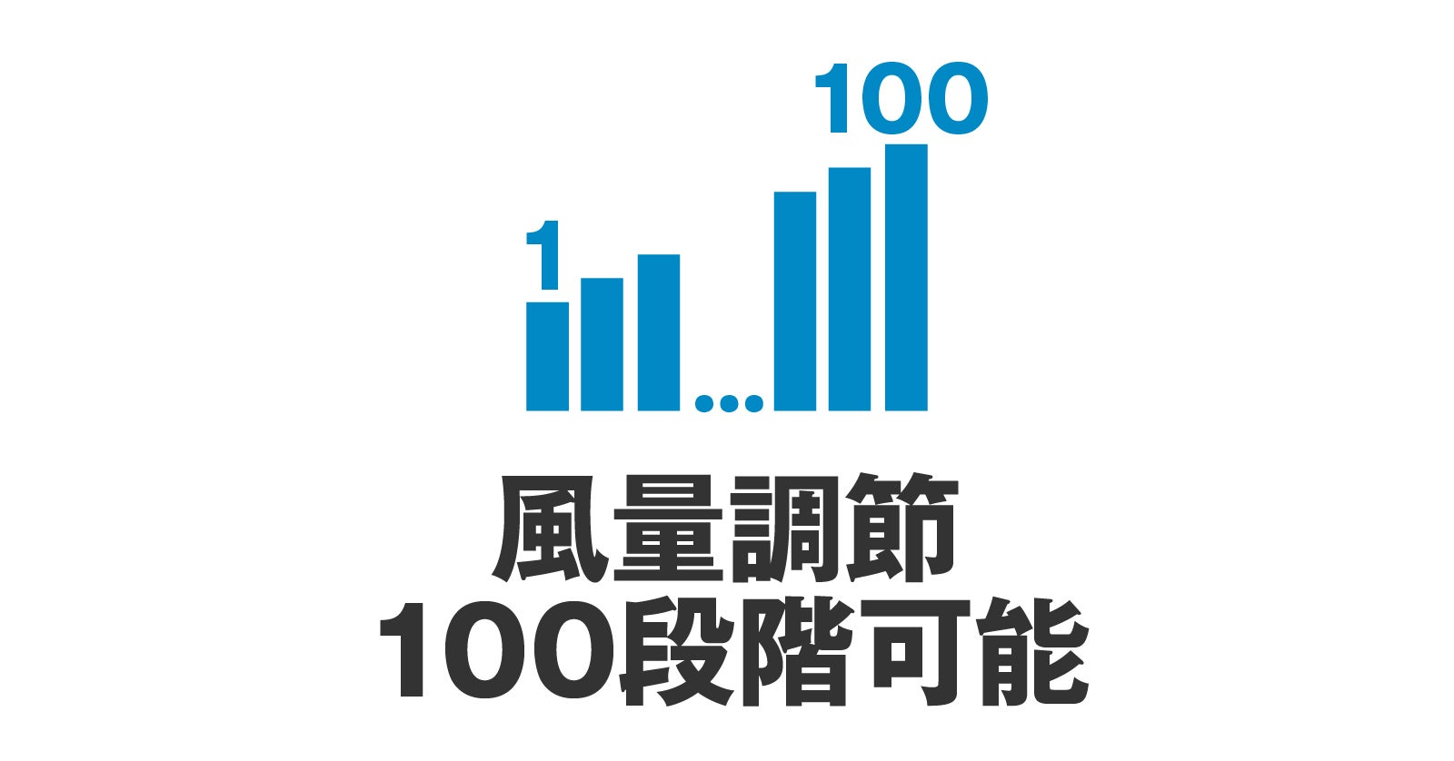 市販のハンディファンだと風量は一定、または調節できても弱・中・強の3段階程度。