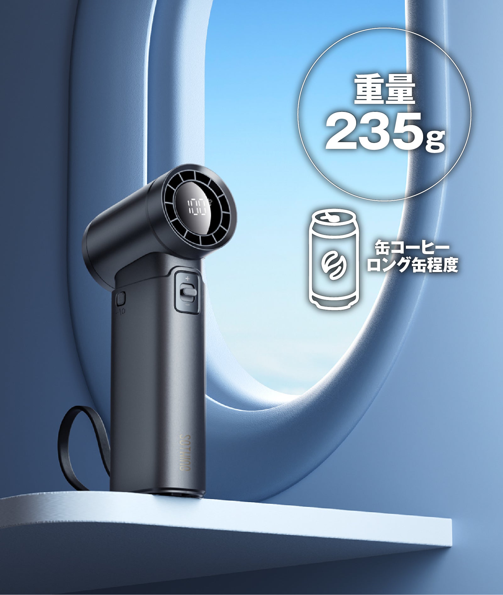 【ChargeFan Pro】はスマートでコンパクトなボディながら、最大風速11mの強風を送り出すパワフルなハンディファンです。