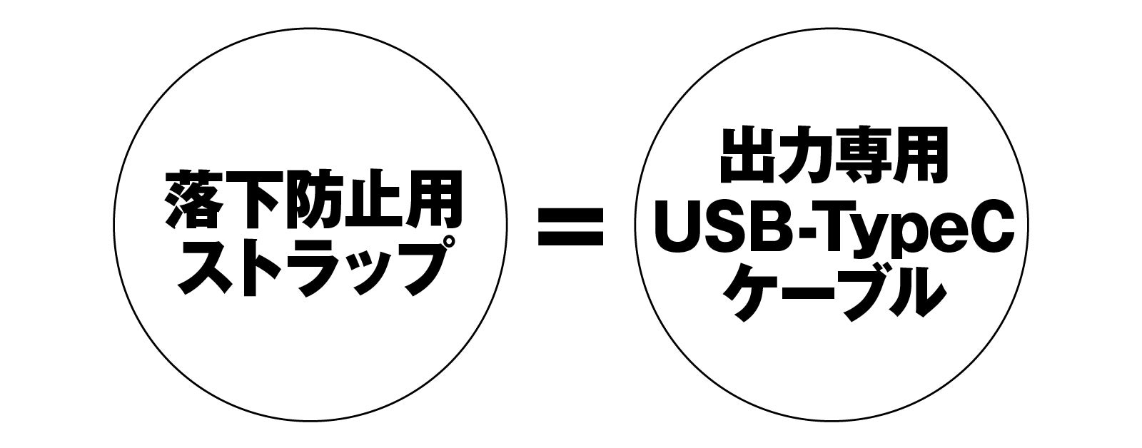 【ChargeFan Pro】の落下防止用のストラップは、出力専用のUSB-TypeCケーブルとの二役!