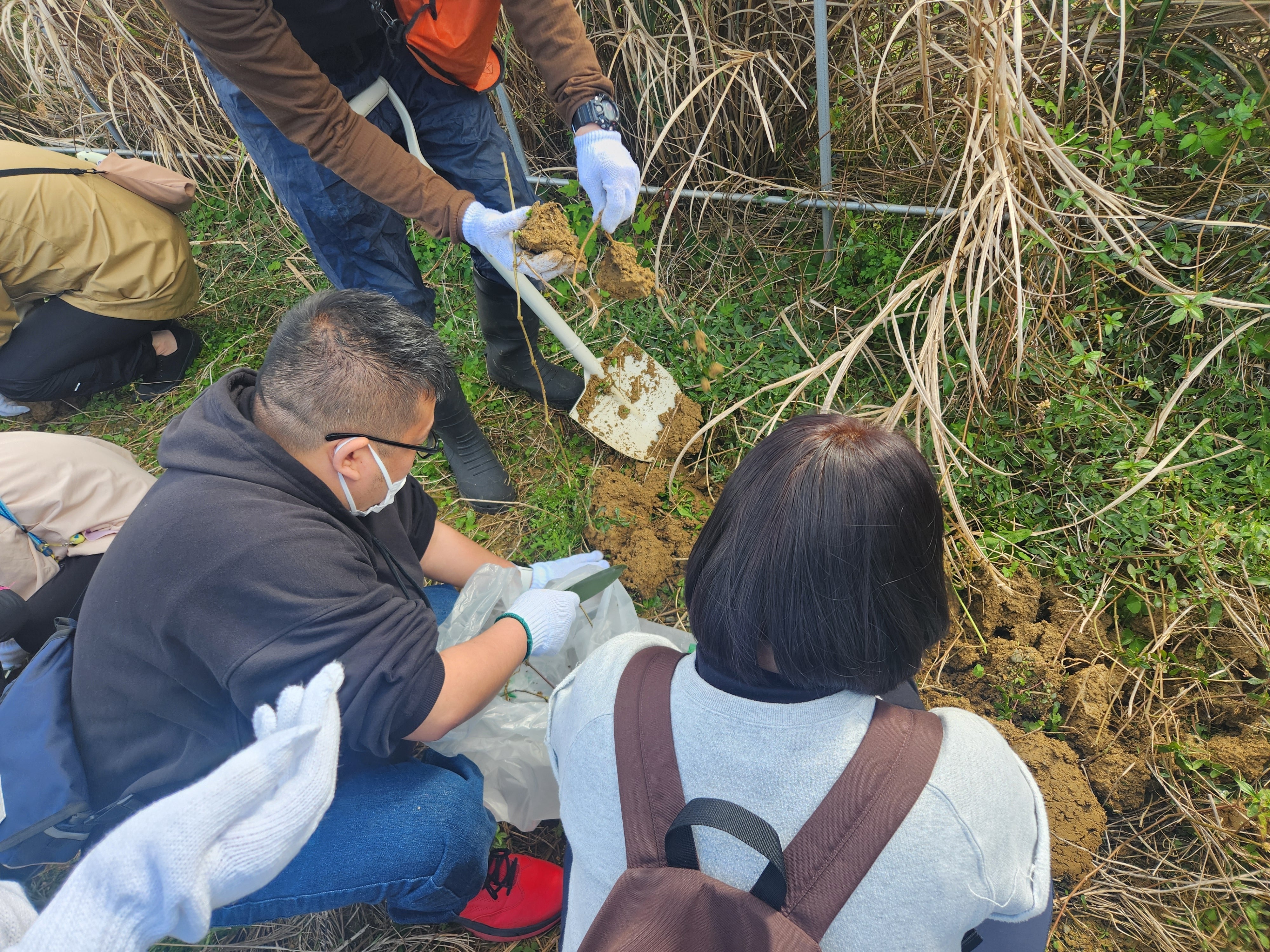 外来種駆除活動では、講師から外来種の説明を受け、駆除作業を行いました。