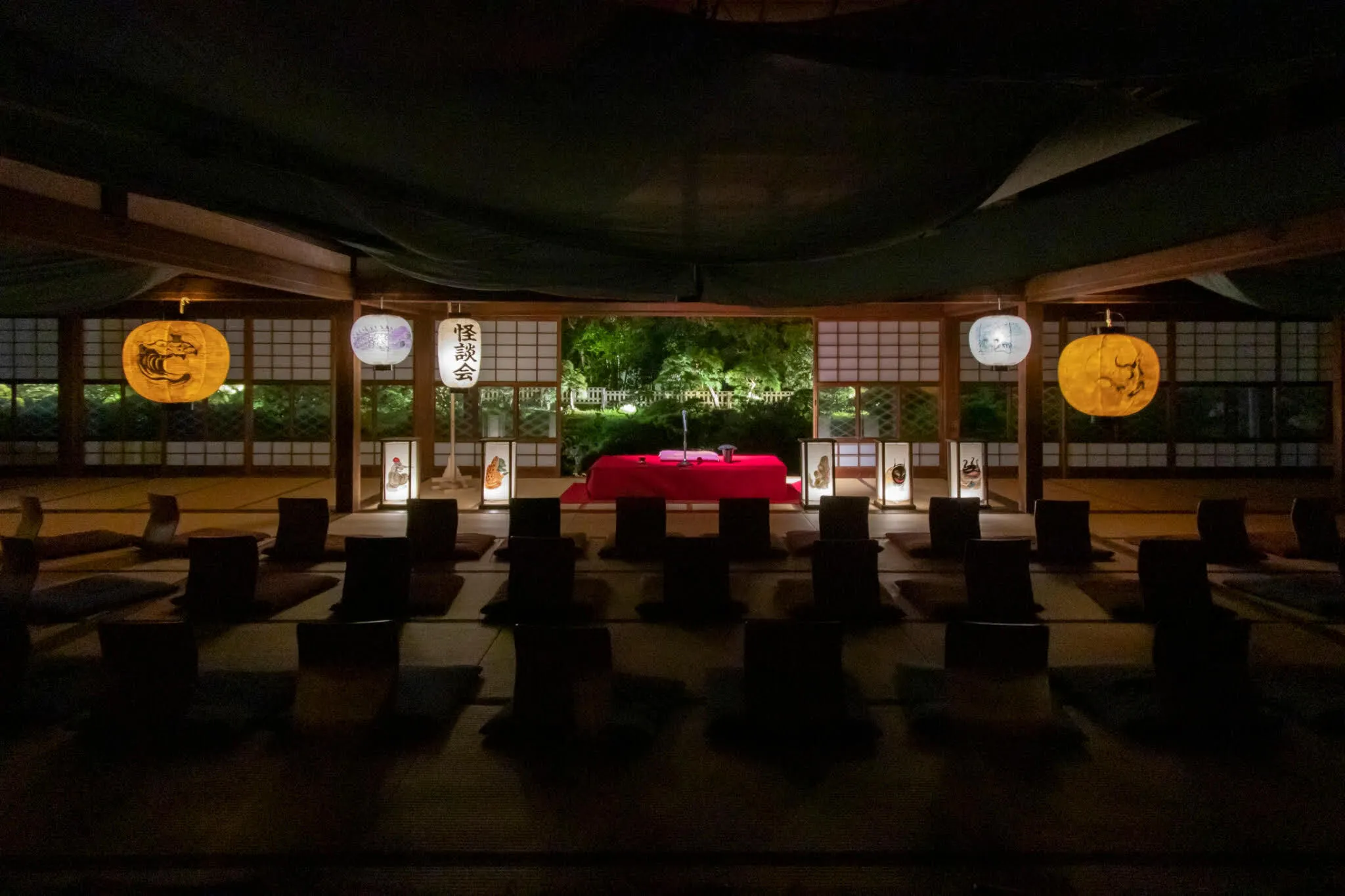 怪談師には城谷渉氏を迎え、提灯と優しくも怪しい光と文化財の中で情緒溢れる空間で行われる当怪談会を今年はより多くの方にお楽しみいただけるよう、オンラインライブ配信に挑戦します。