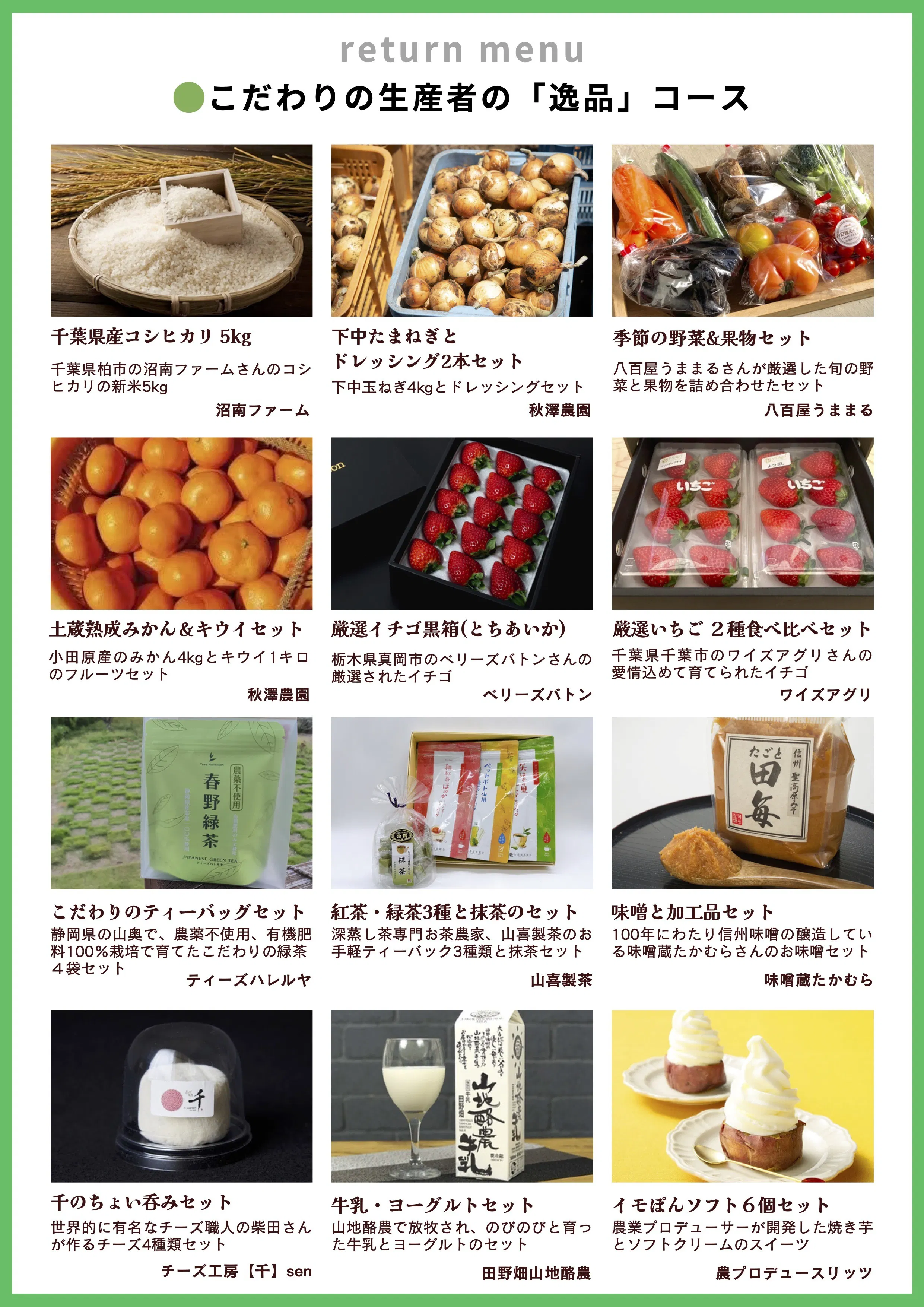 - ¥11,000:こだわりの生産者の「逸品」コース(送料込)