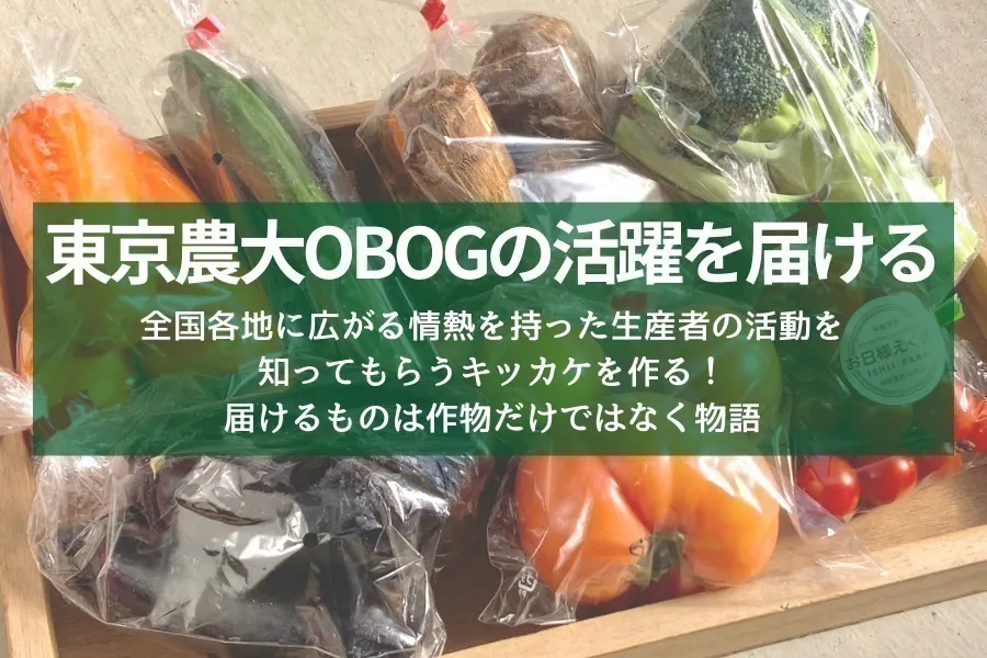 このプロジェクトは私たちの仲間である東京農業大学のOBOGたちがこだわりを持って作っている本当に美味しい野菜や果物、加工品をより多くの方へ知ってもらい、全国各地の生産者を応援するプロジェクトです。