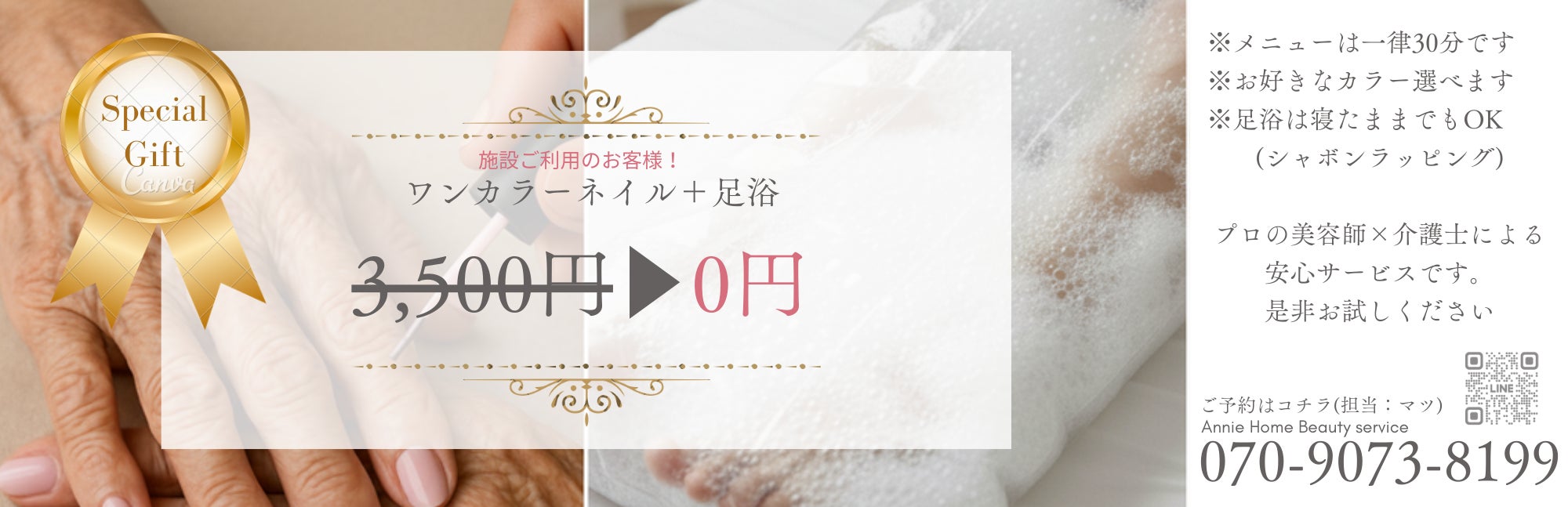 こんにちは!そしてメリークリスマス!ご支援・応援してくださっている皆さまへいつも本当にありがとうございます。来年からの活動に向けたチケットを作成しました。施設ご利用者さま向けに、「ワンカラーネイル+足浴」を無料体験としてお届けする内容です。このチケットは、クラウドファンディングでいただいたご支援をもとに、「安心して受けていただけること」「ご家族が親孝行として選びやすいこと」を大切にしながら制作しました。私は、美容師と介護士の両方の経験を活かし、来年から本格的に訪問美容サービスをスタートします。今年は準備の一年でしたが、来年は 一人ひとりに寄り添う時間を、実際に届けていく一年 にします。クラウドファンディングは 今年いっぱい となりますが、いただいた想いをしっかり形にしていくことが、これからの私の役目だと思っています。引き続き、温かく見守っていただけたら嬉しいです。どうぞよろしくお願いいたします。Annie Home Beauty serviceマツ