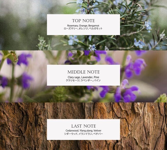 Top Note:ローズマリー、オレンジ、ベルガモット