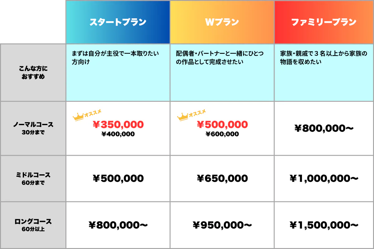 豊富なプランとオプションで必ずあなただけの作品をお届け