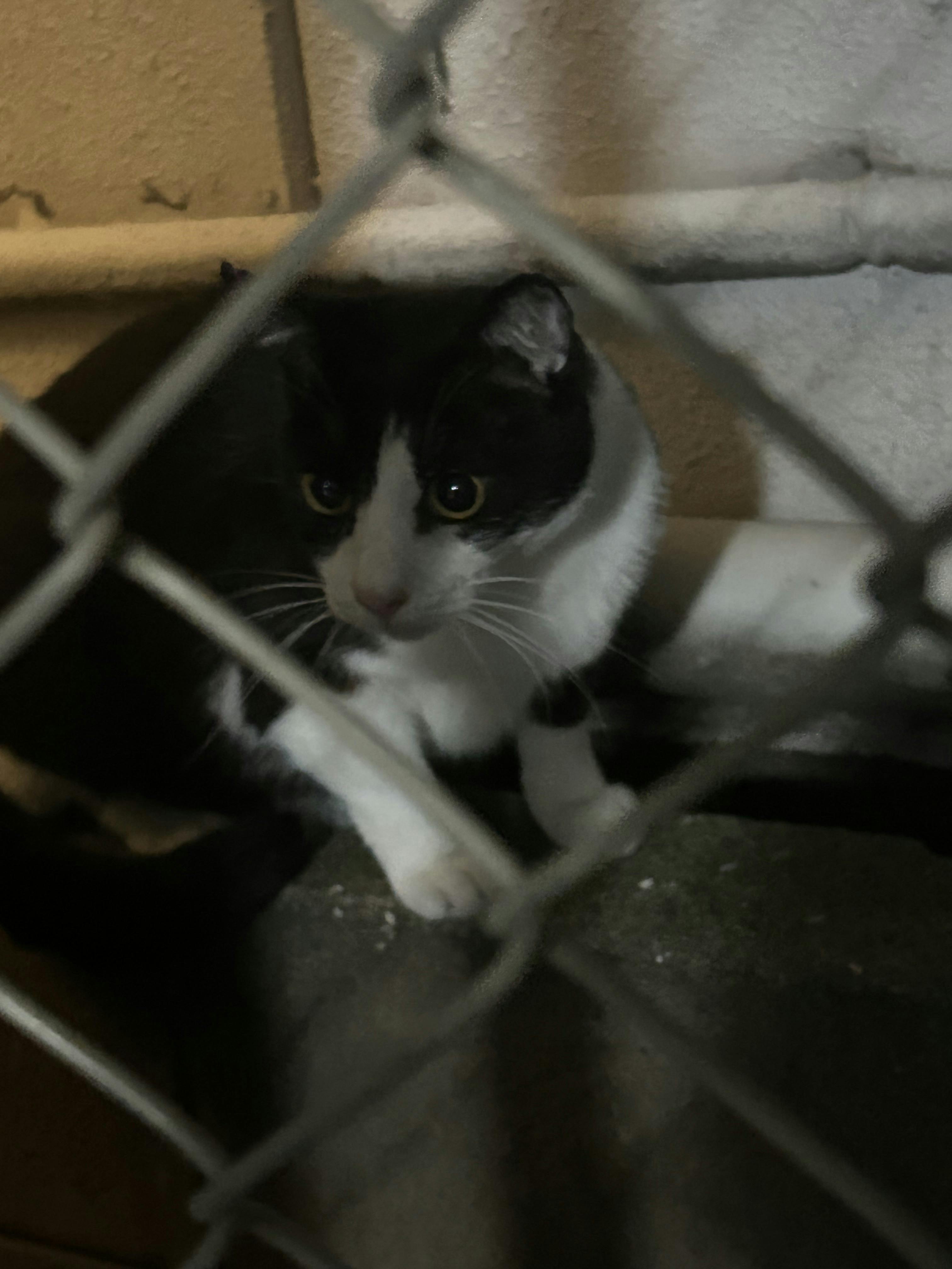 白黒猫モーちゃんが久しぶりに我が家に来ました。茹でササミが目当てです。ようこそです。