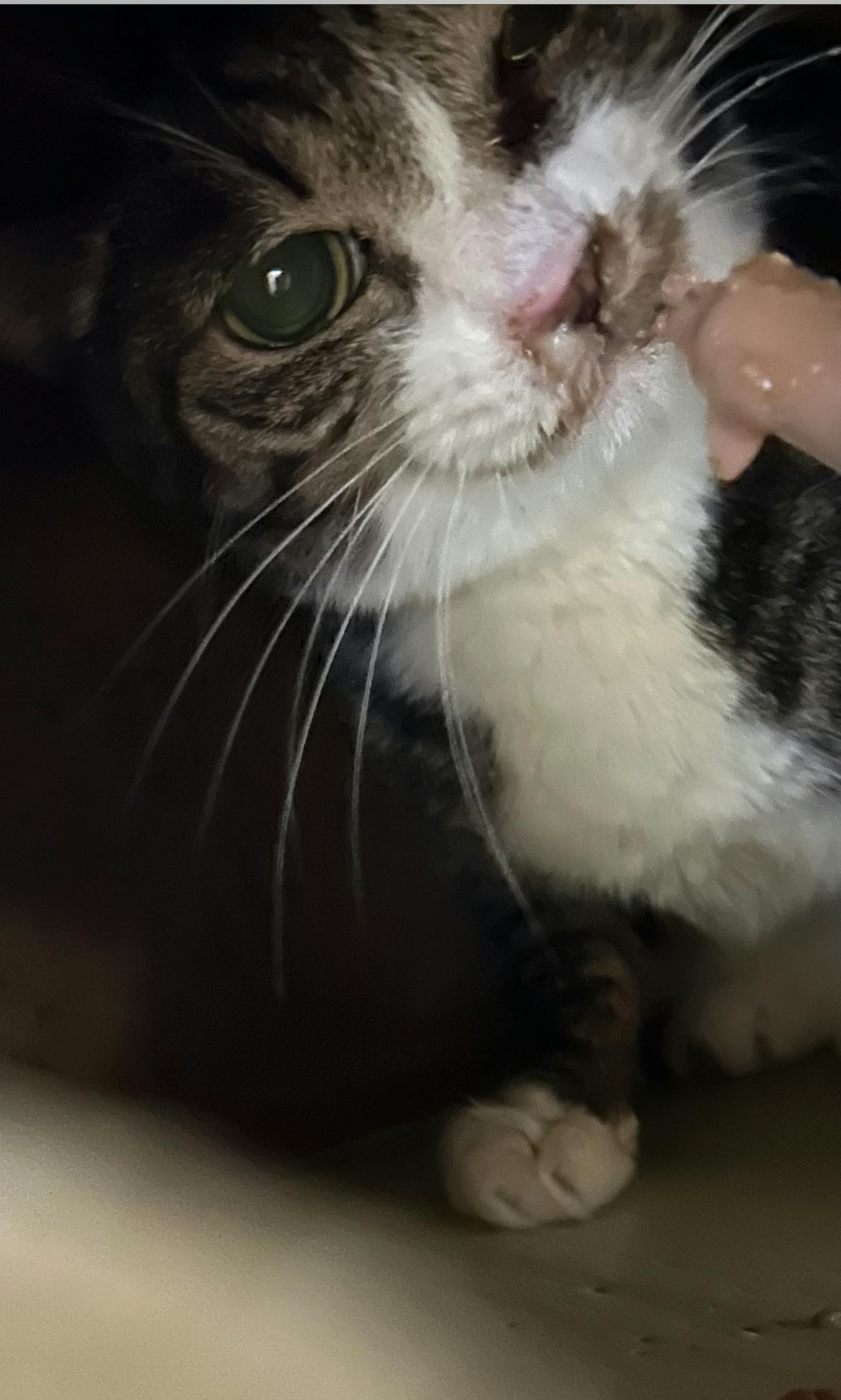 なっちゃんは鼻水を取ってあげたらカリカリを食べるようになりました。でも粉薬を飲ませたいし、栄養を摂るためad缶をシリンジで与えてます。回復してきてホッとしてます。