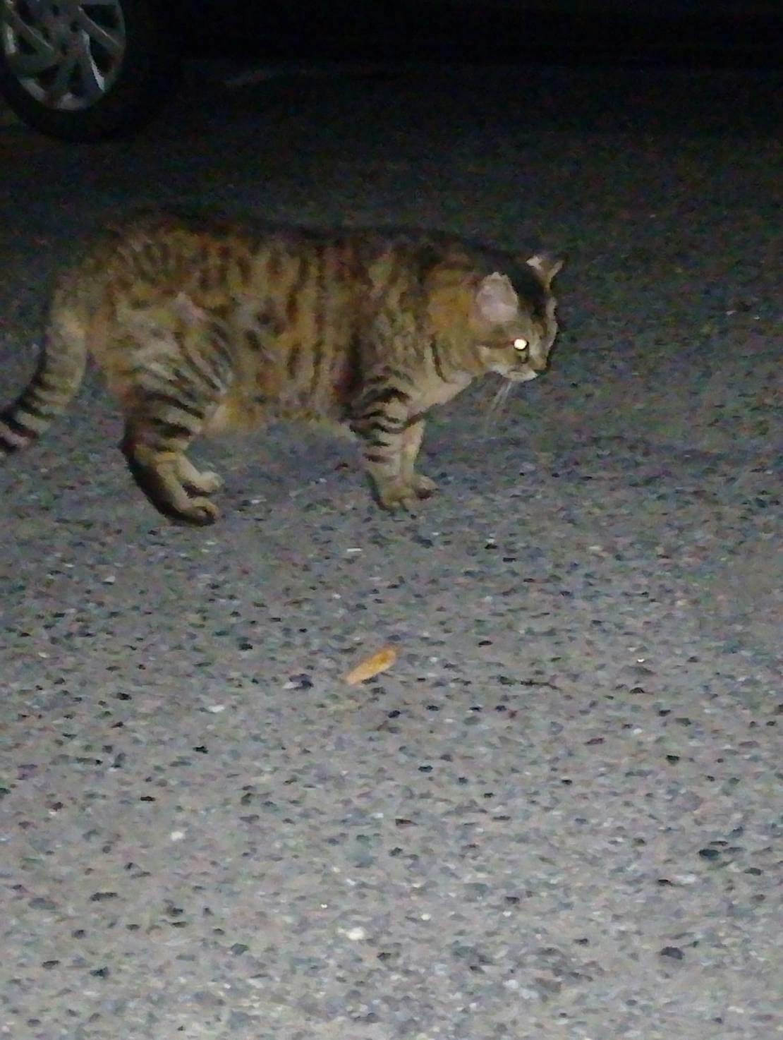 向かい側から鳴き声が〜赤い首輪の黒にもカツオとささみを