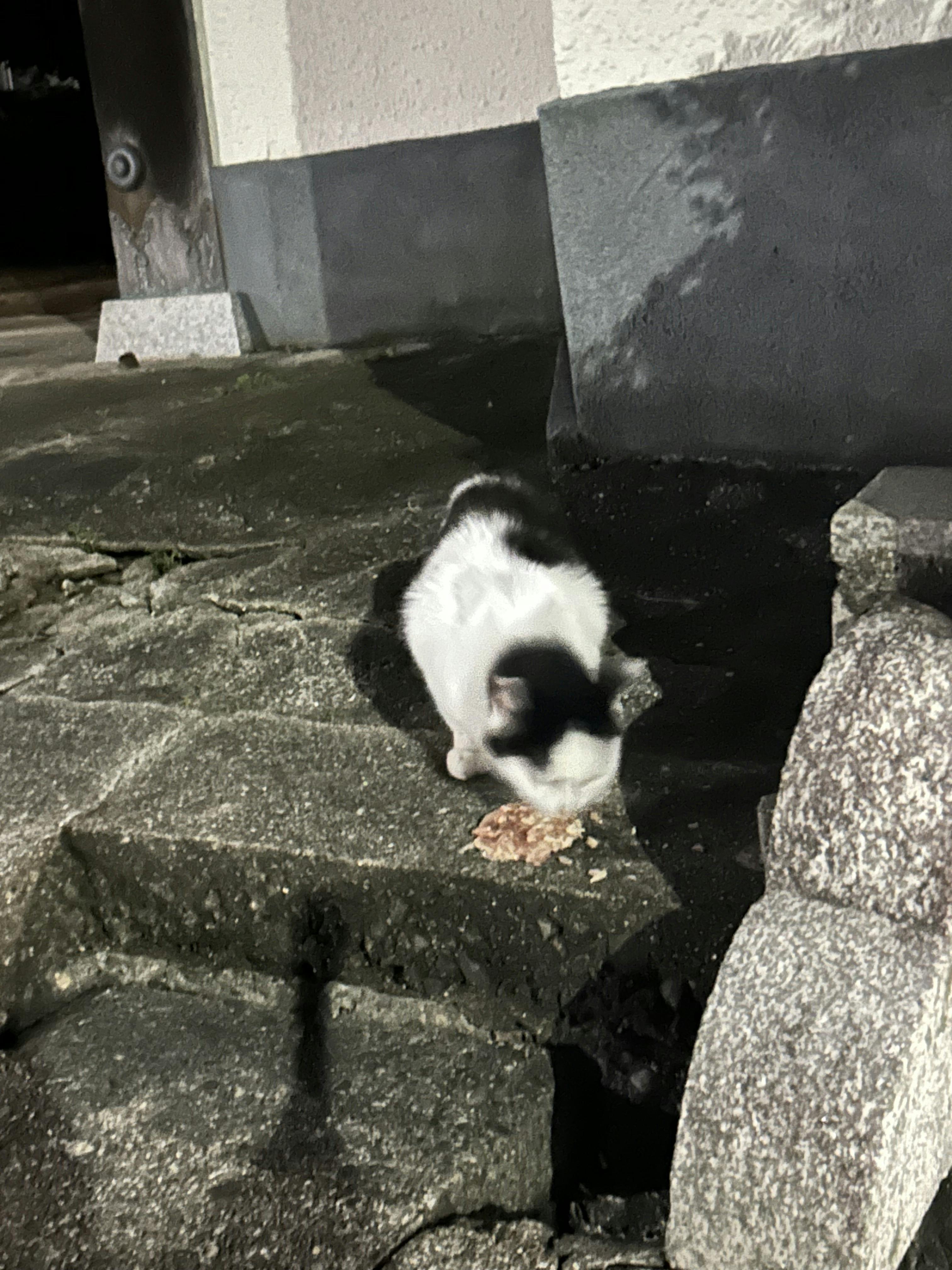 あらー私にくれるの?ありがとう。大切にしますね。でもママを手術しますからね!とTNRした子です.この暑さ、パウチの水分と喉越しが嬉しいと思います。がっついてました。