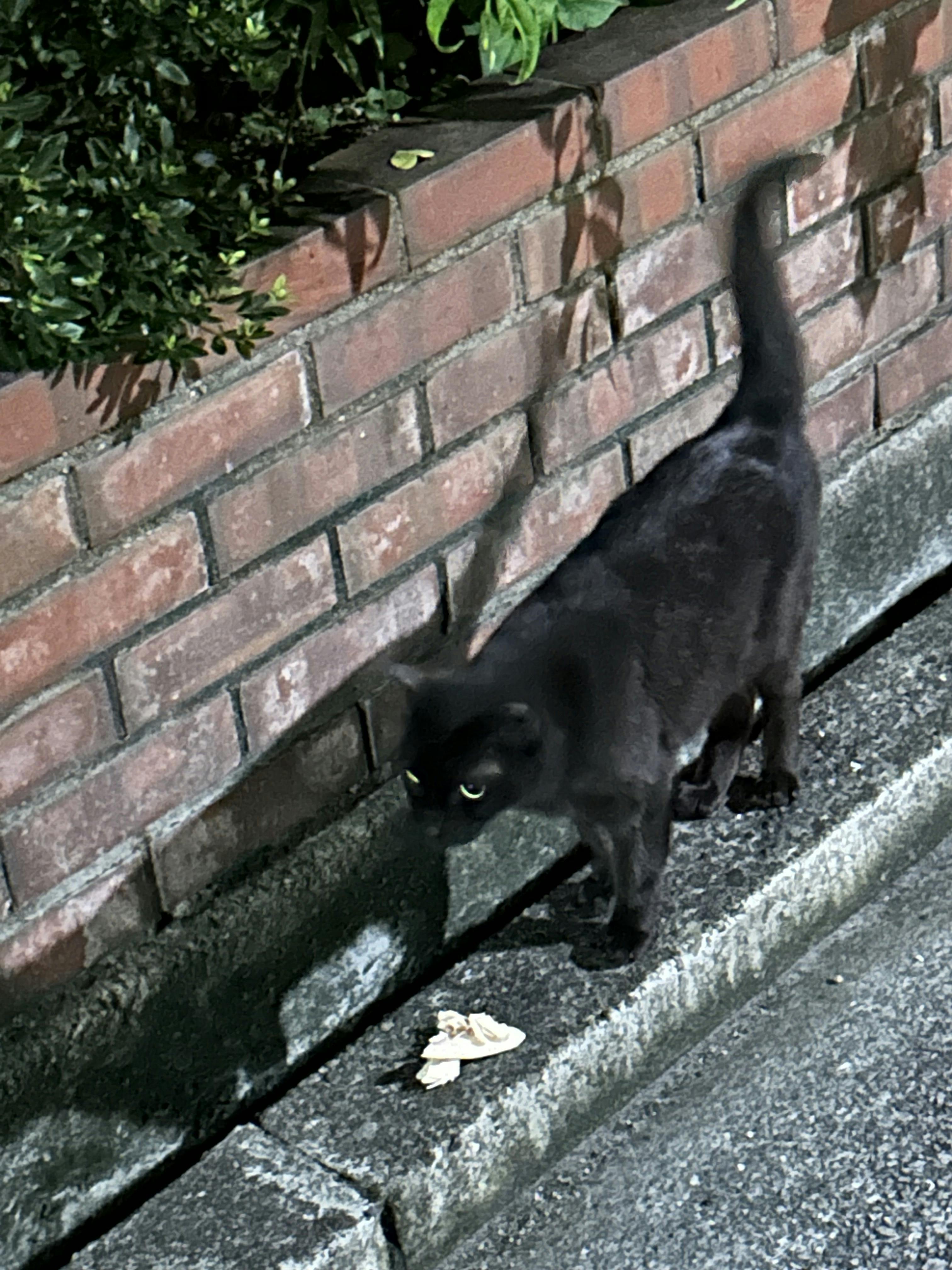 うちのご近所の豪邸の庭に住む,チー黒さん。私が家に出入りする度に,大声で呼び止めるんです。イナバササミかカツオ〜!