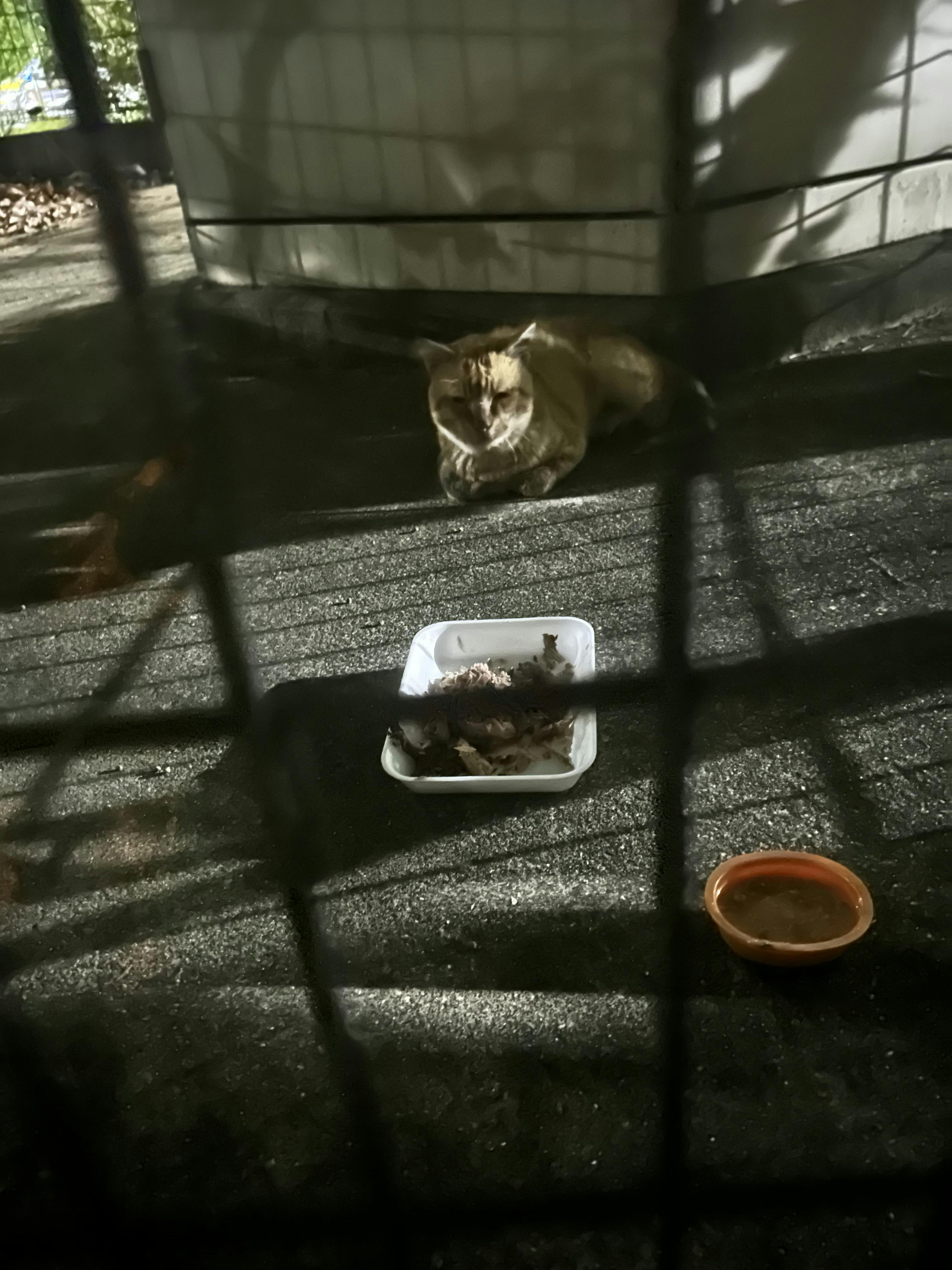 何周も公園の中を自転車で回り見つけた!この子は人間が入れない柵の中にいる。