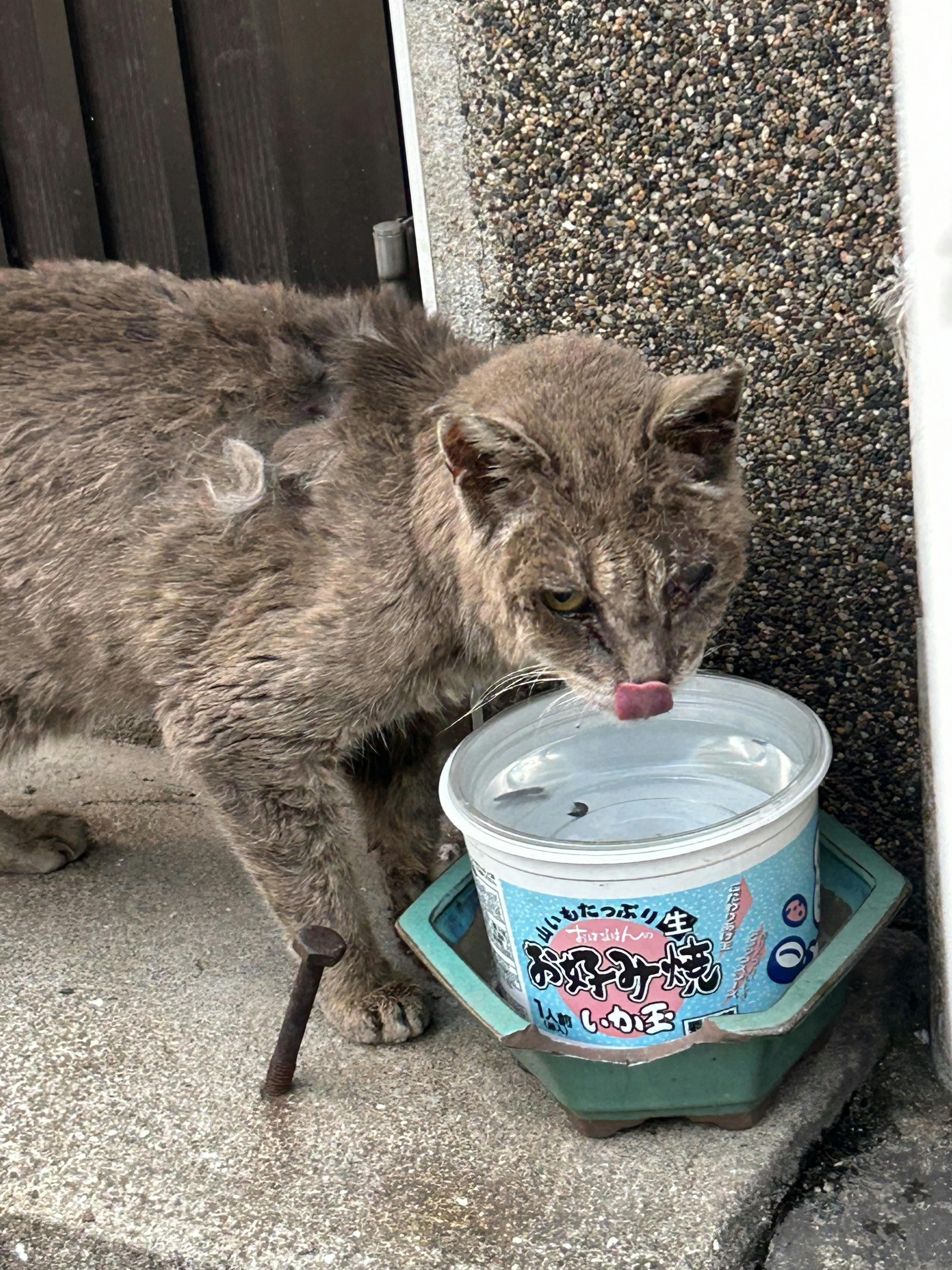 オジサンの帰りを待っていました.オレンジカップとad缶を与えました。