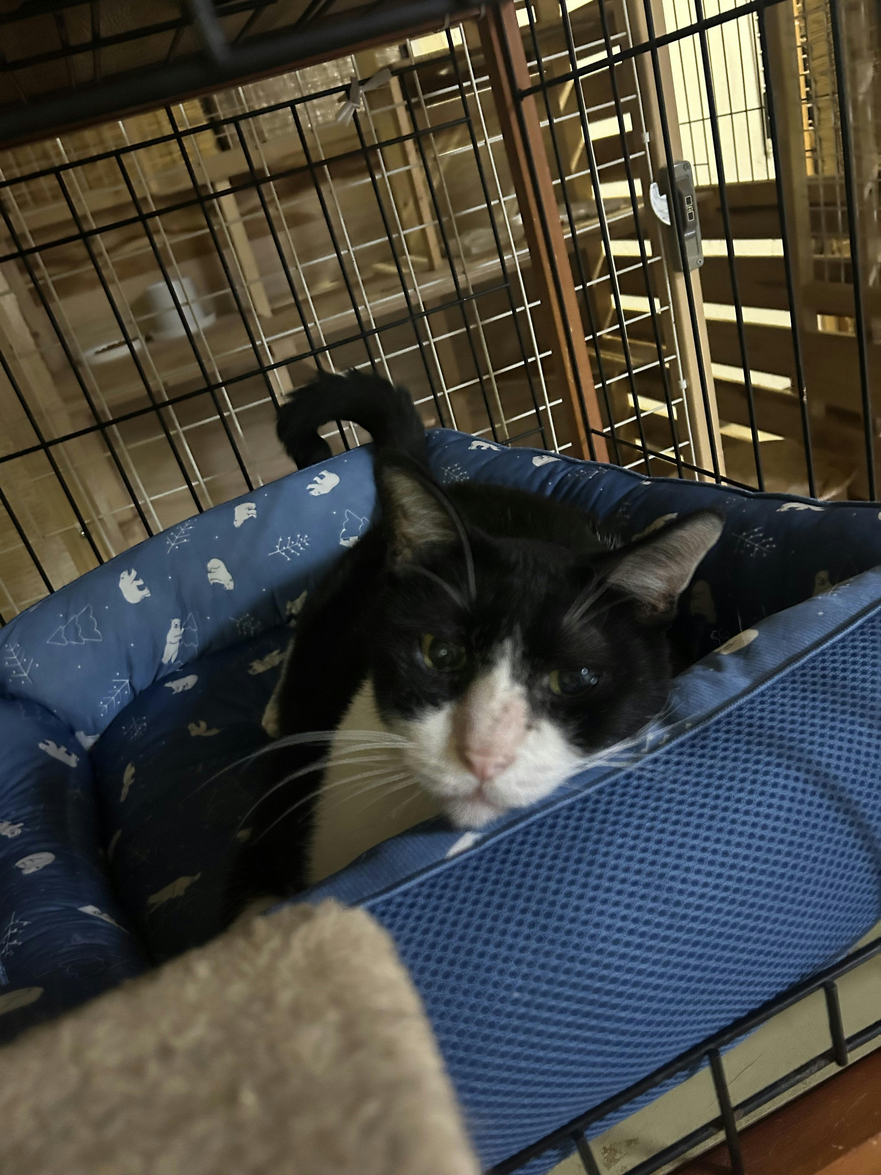 新入りさん みーちゃん。広い一段ケージ買いました。少しは歩かないとね。