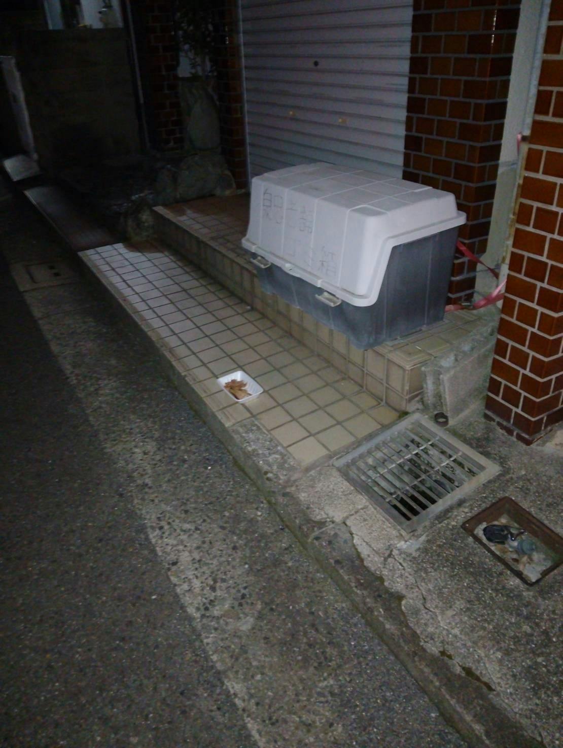 8、神社に紙皿でパウチとササミを置いてみました