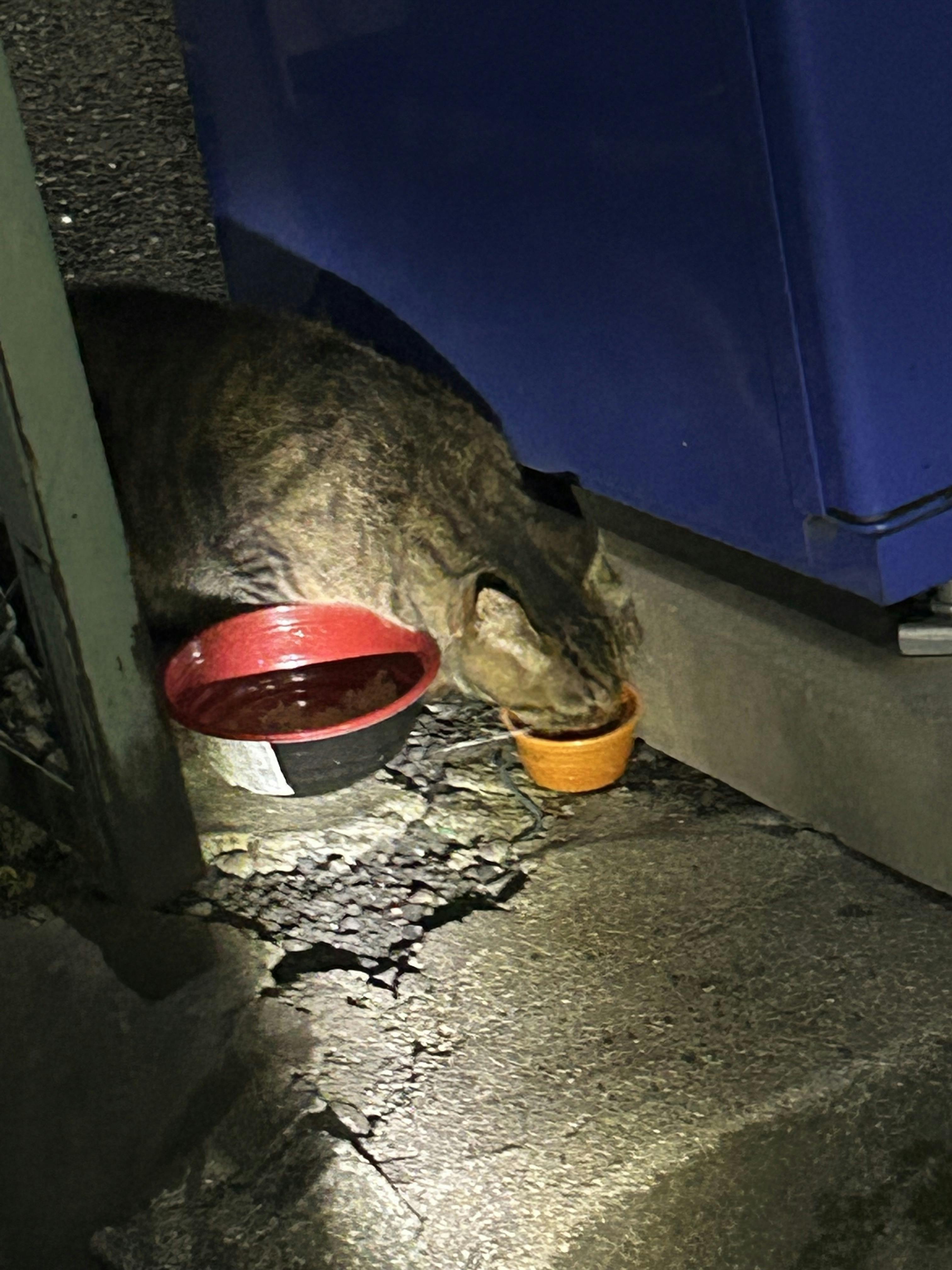 回収時には出てきたので、カツオとササミをあげました