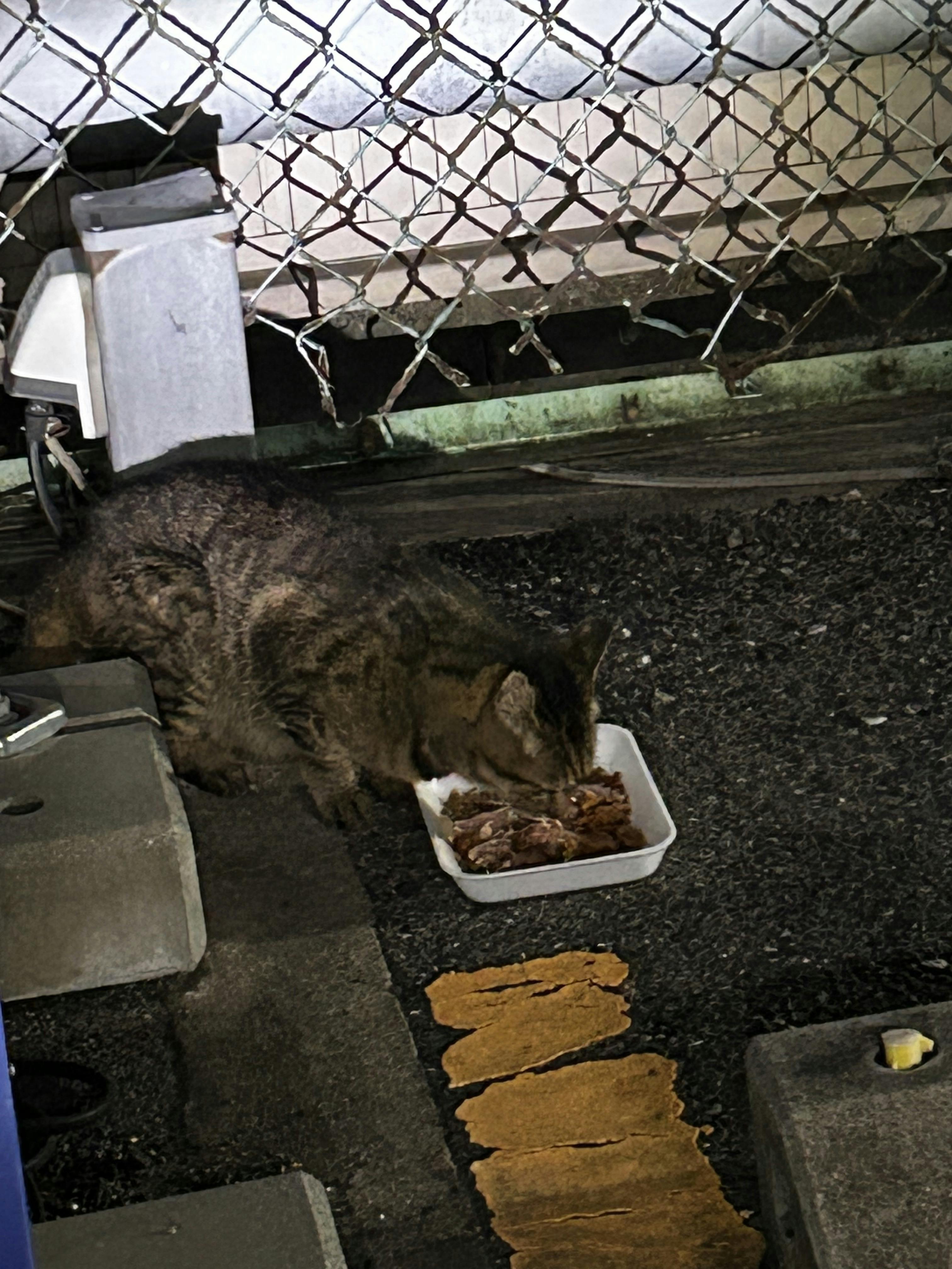 聞いたことのあるこの声は,近々壊すビルのシャッターの中。半年ぶり?もう居ないと思ってた。カリカリ置いてた人も来てないようだったし。