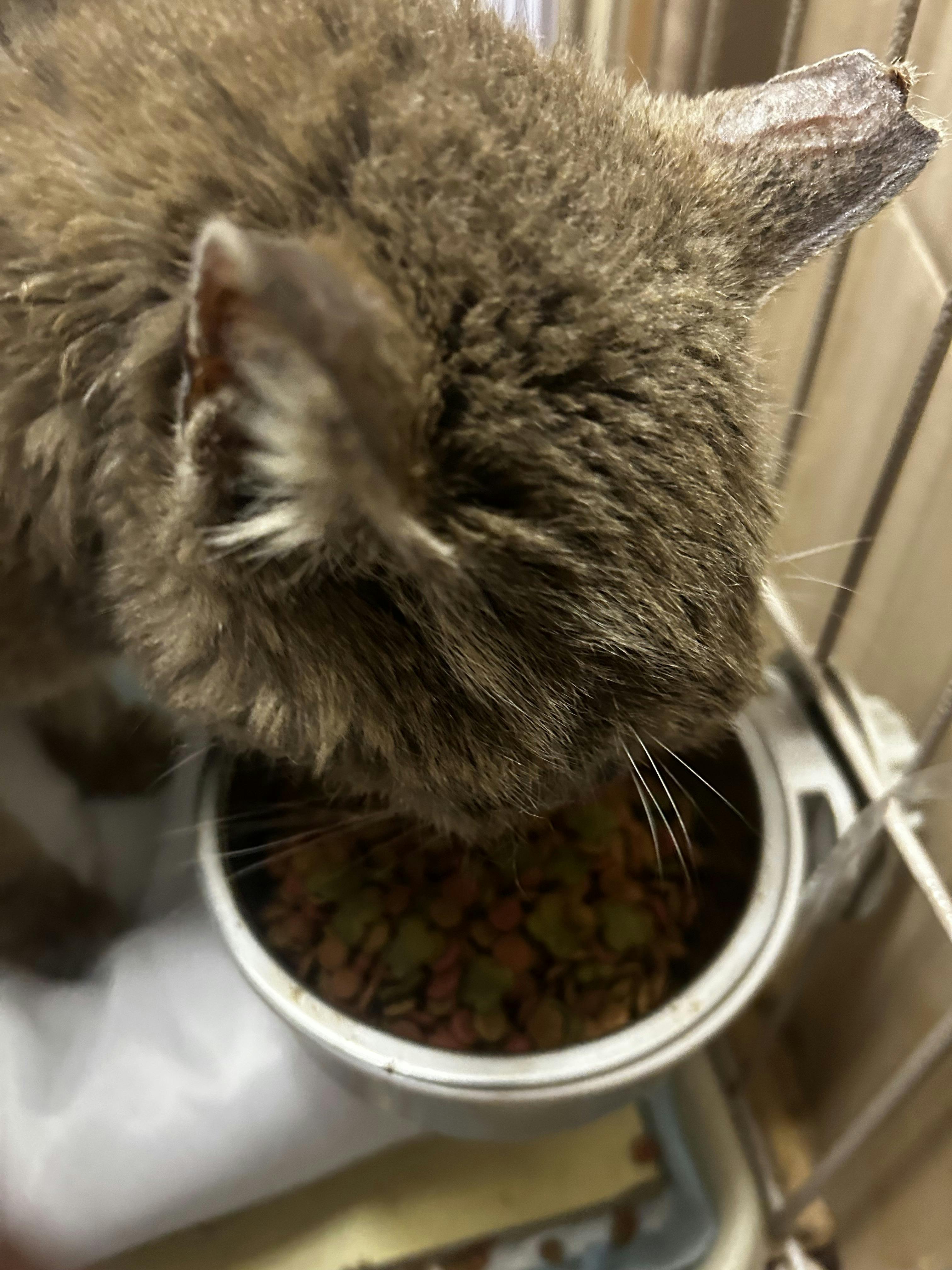 保護みーおばあちゃん、三ツ星グルメに心奪われてます。1日小袋5つを食べます.歯がないから飲み込んでるんでしょう。極小粒だから飲み込みやすいです。