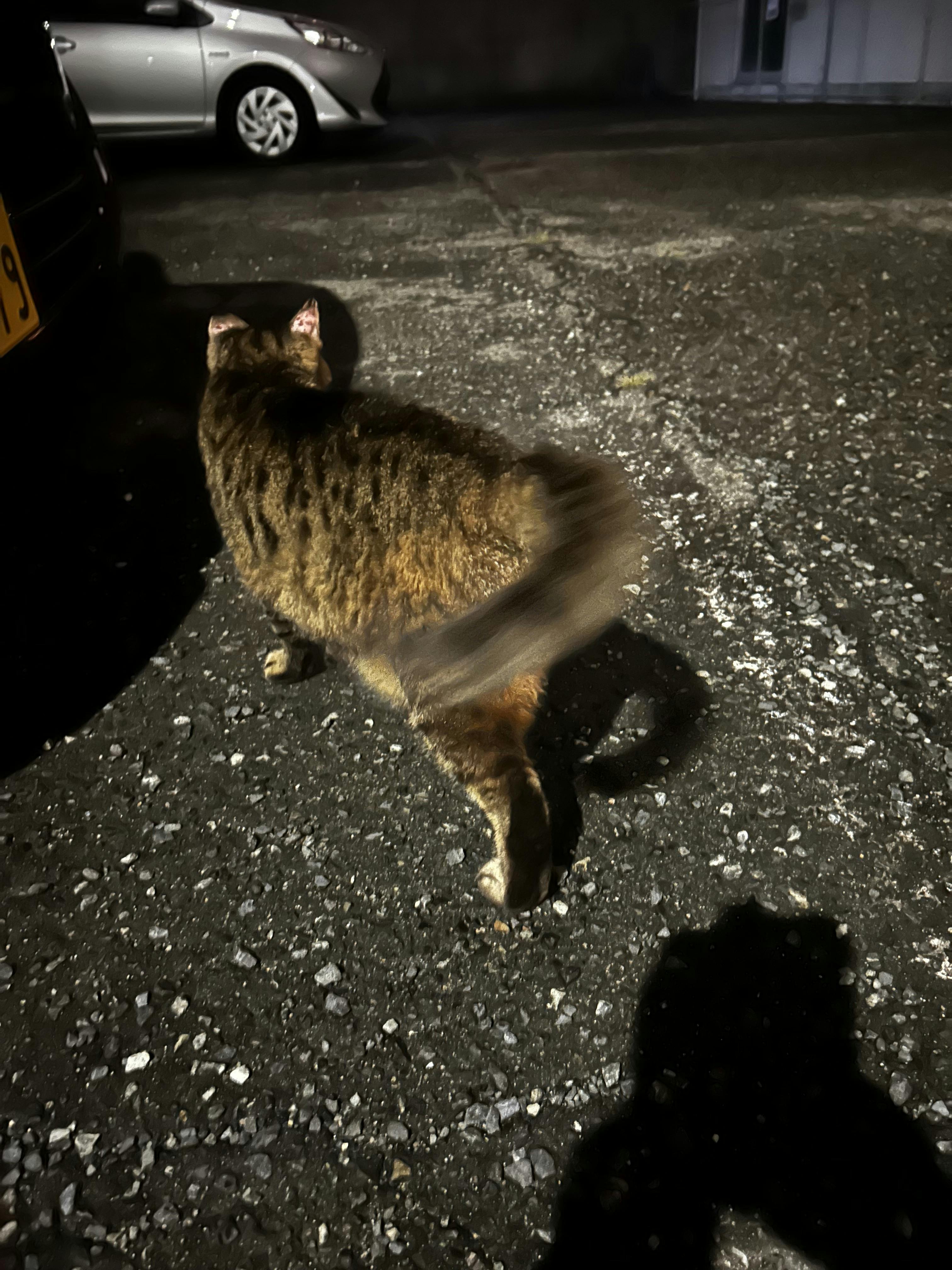 あ!仔猫はどう動く?マンションの人が置いてる所は屋根がない。置き餌をして,雨の中を走って来てもダメやし。でも雨の降る前に来て食べたら,それは良いことやし。