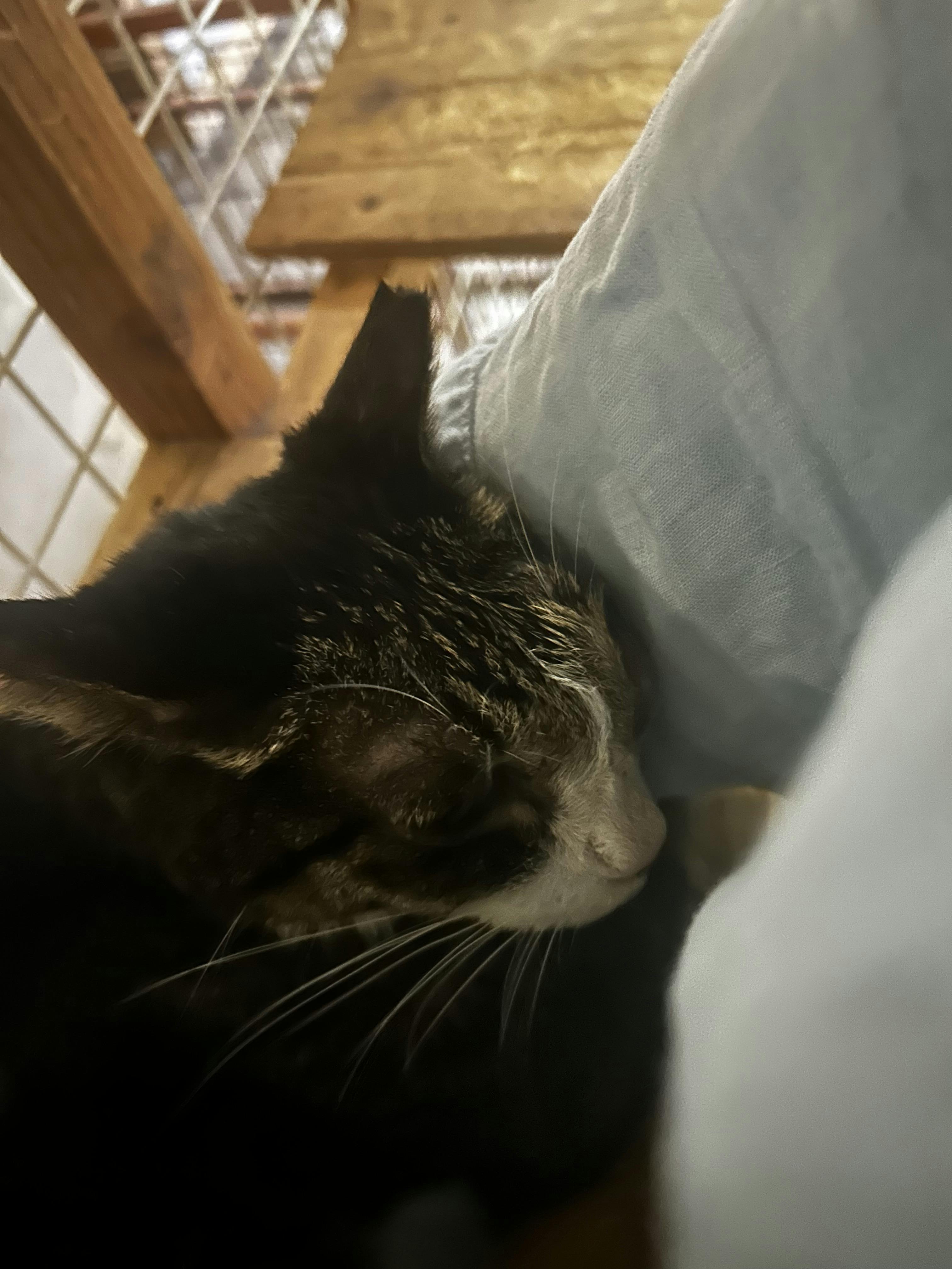 チュールしか食べません。顔を濡らしたタオルで冷やしてあげたらゴロゴロします。写真は私の胸の中。