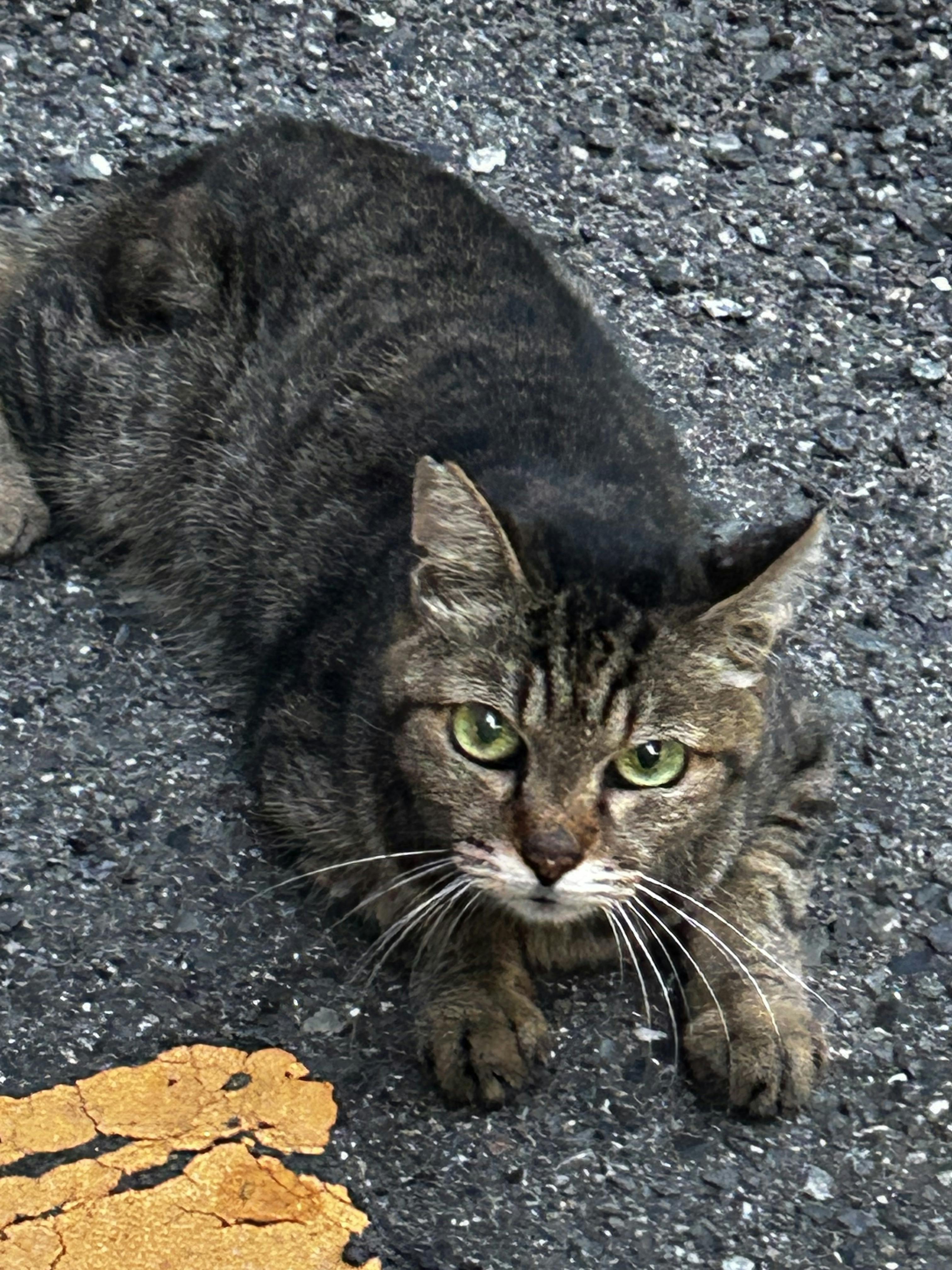 帰る時にゲット! 夜中3時にシャッター猫とチビとミケに届けゴミを捨てに来る私を待っててゲット!