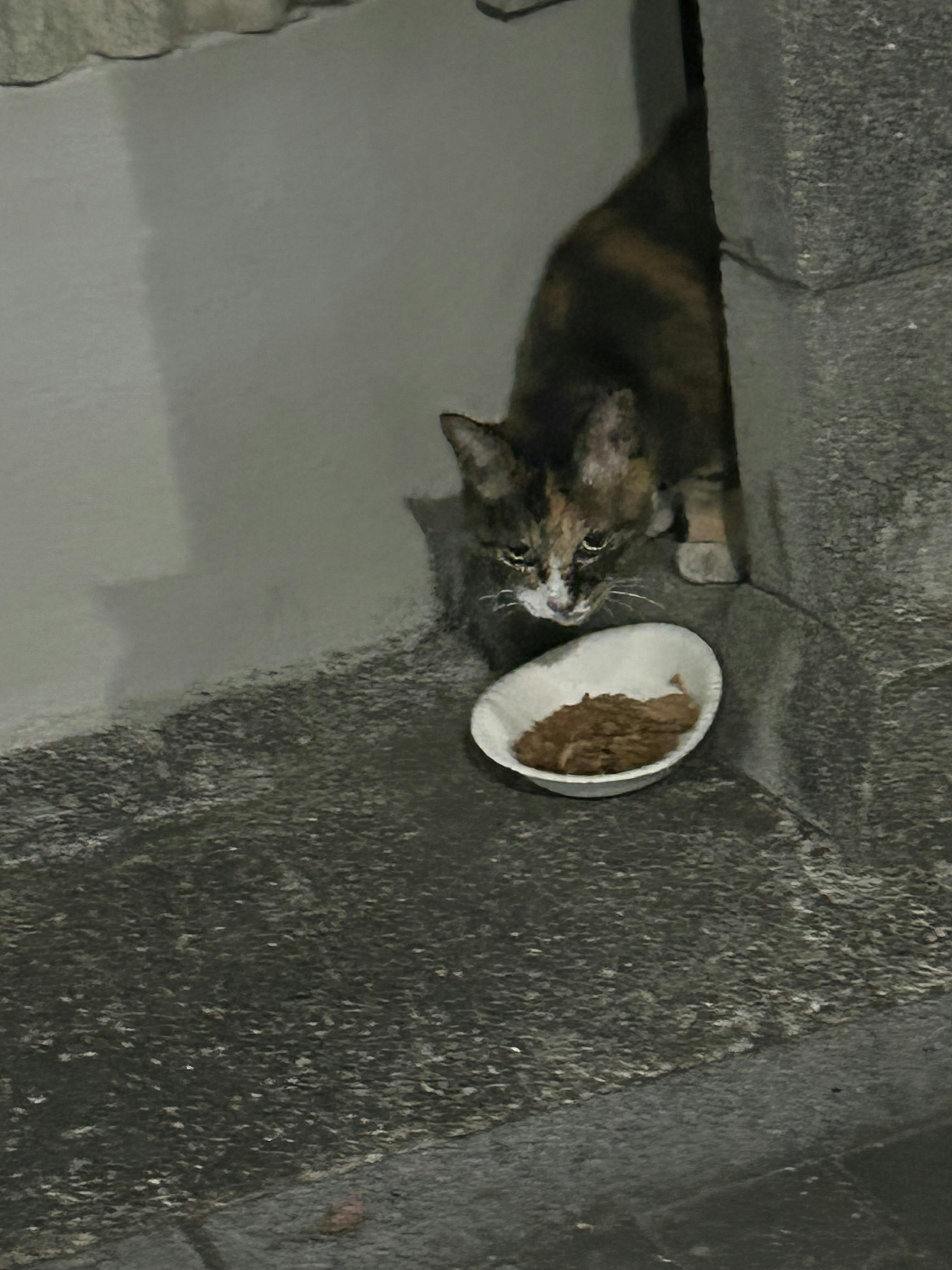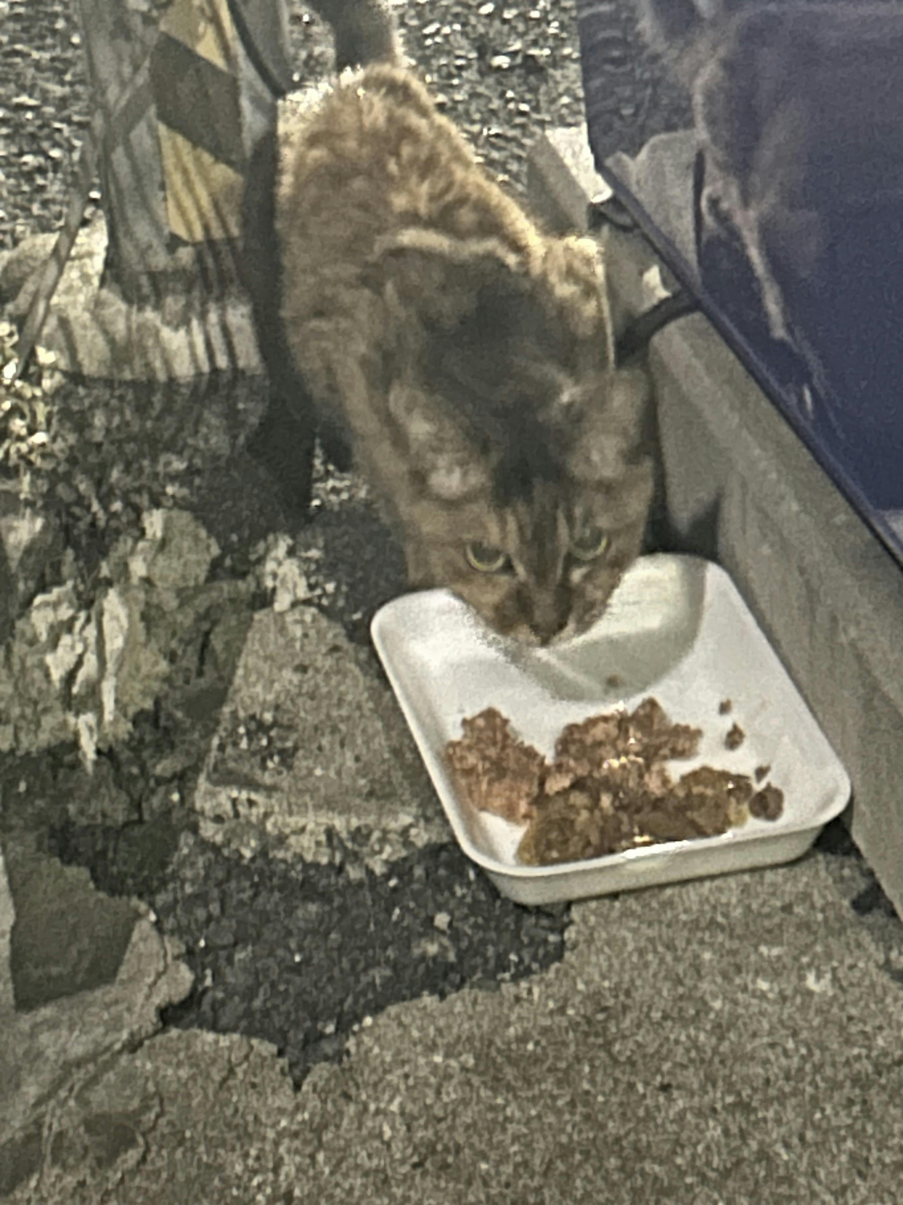 この子 数日前ガリガリ猫を探してる時に出会った、パウチあげたら,私の顔をジーと見てた。