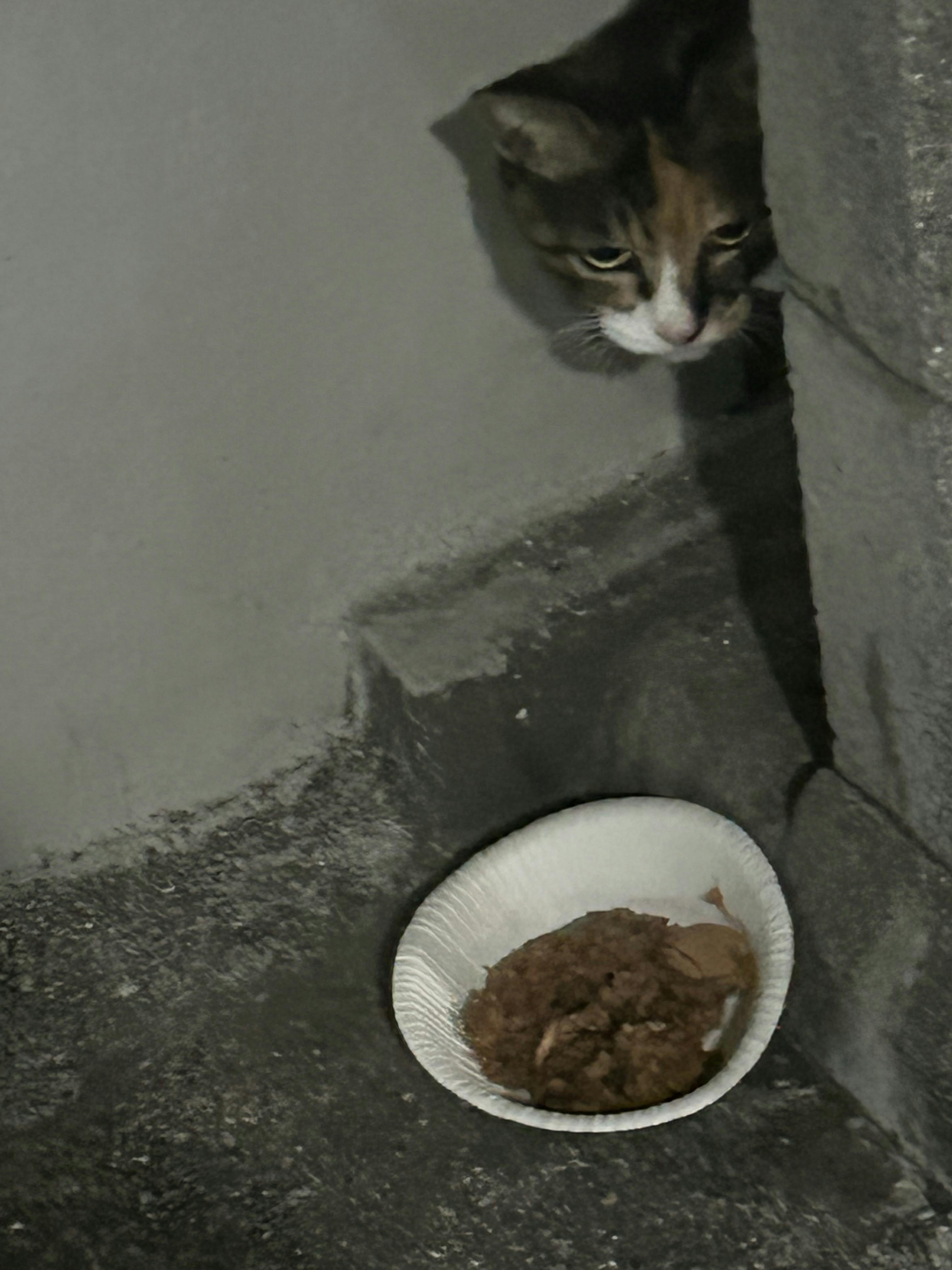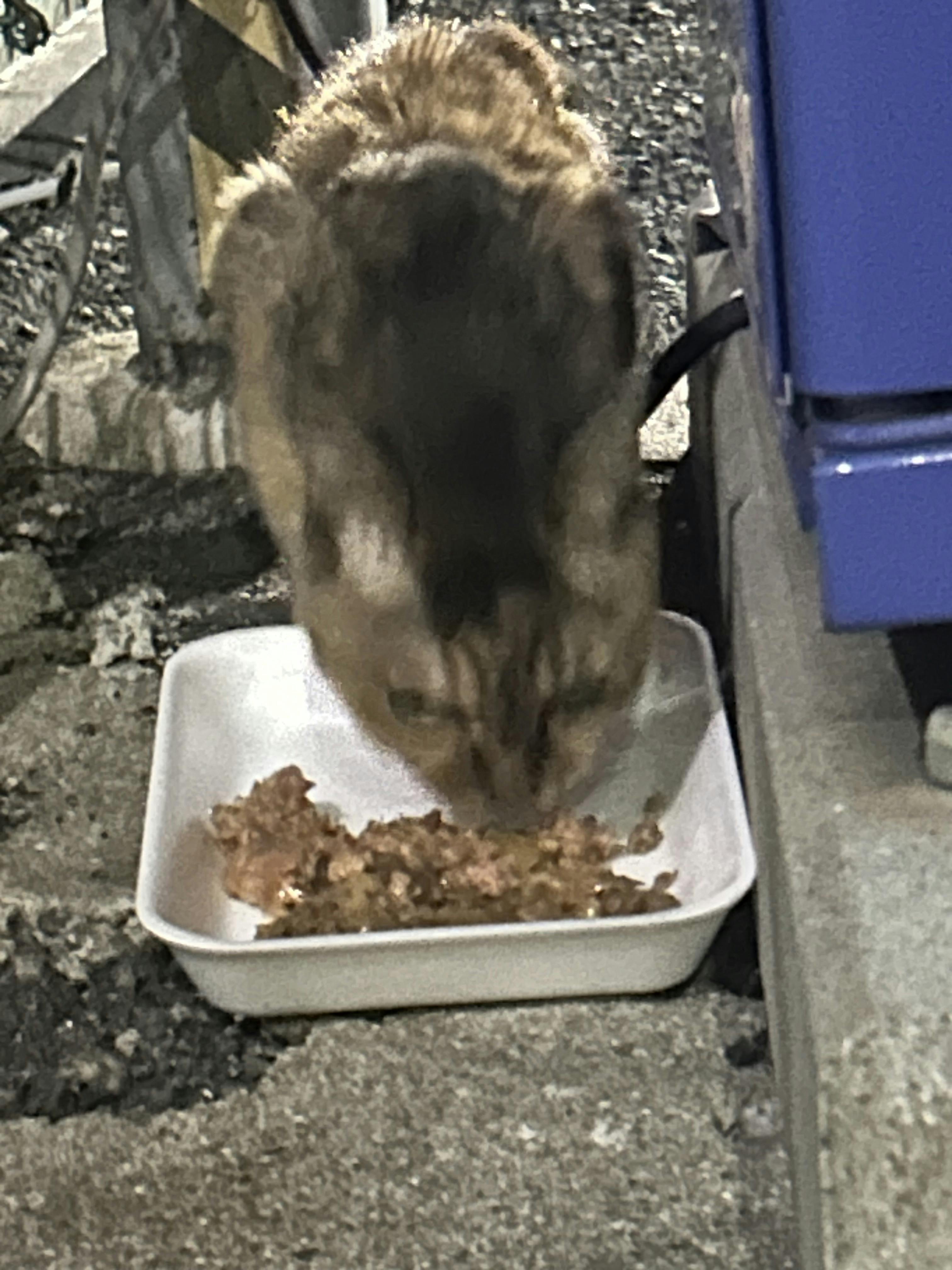 。にやお君が食べた後にきて待ってます。にやお君は気にいらなくて私を違う場所に誘導します。