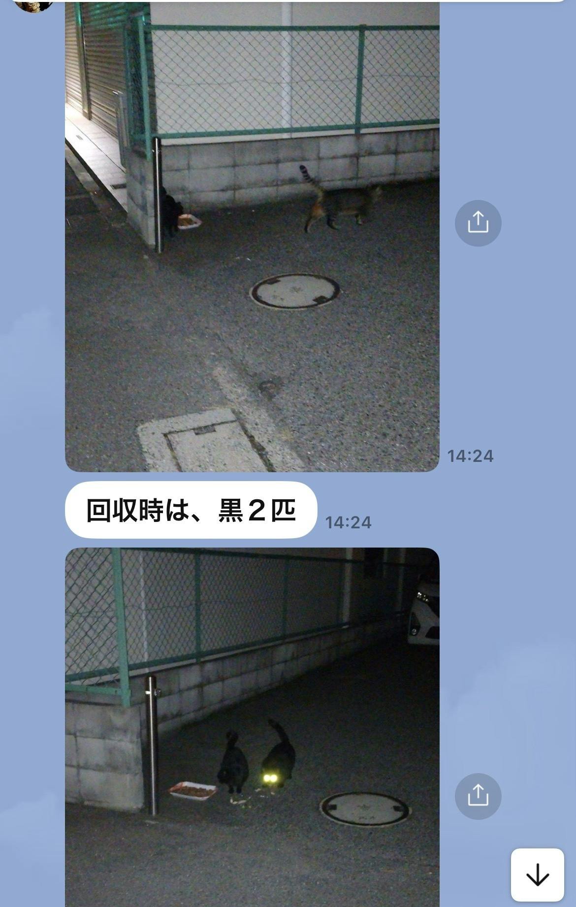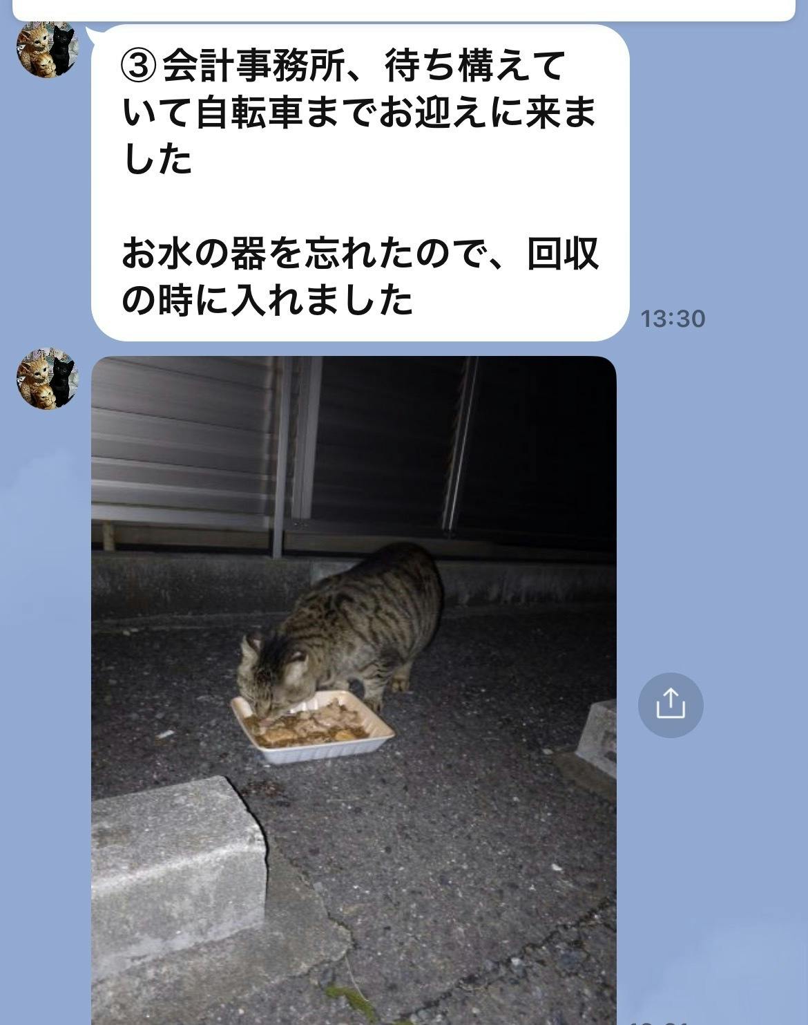 2日は大雨の中、1匹でも多くの猫に食べさせてあげたい!という優しい気持ちで頑張ってくれました。3日は同じ所を2度回ってくれました