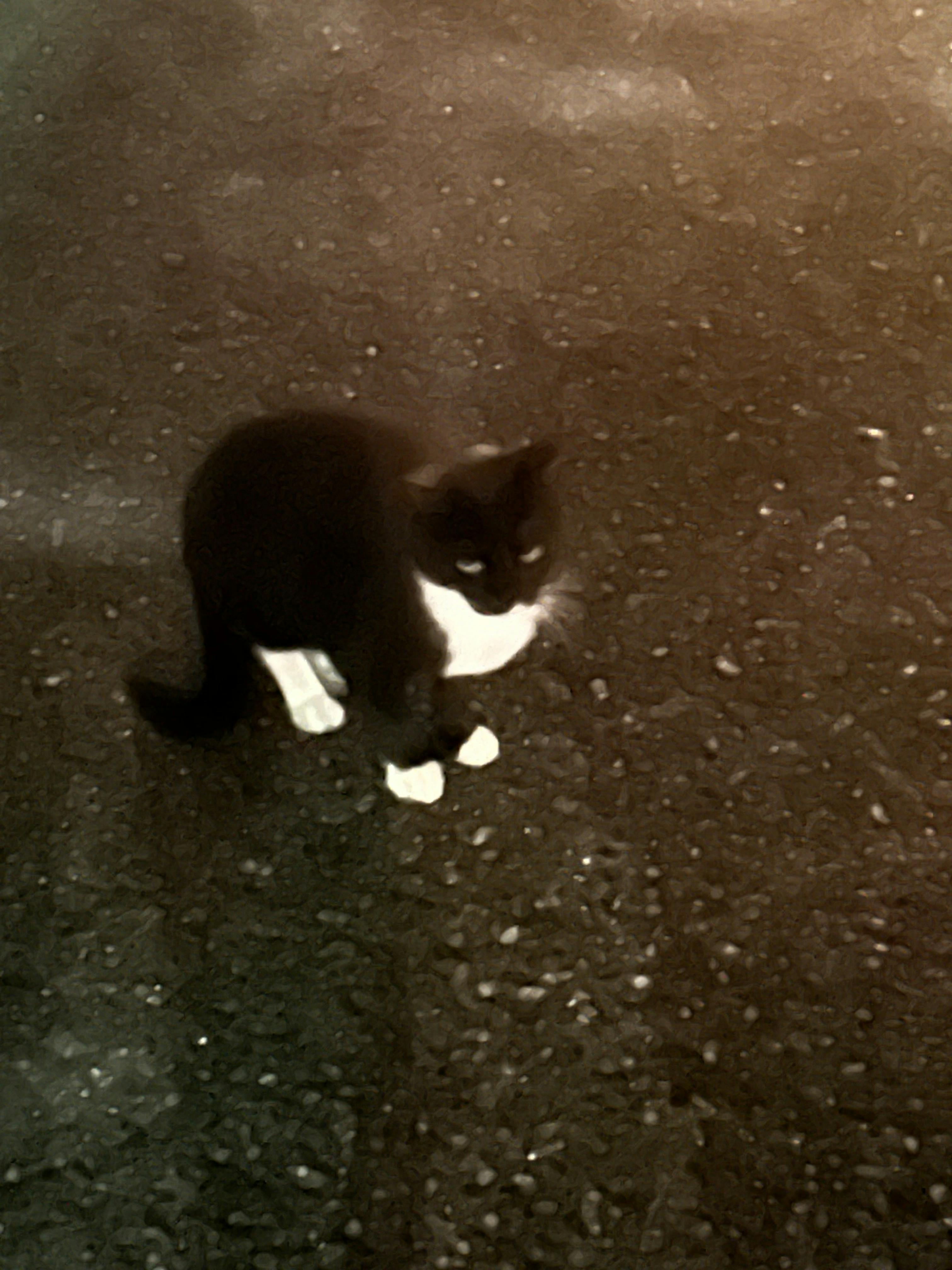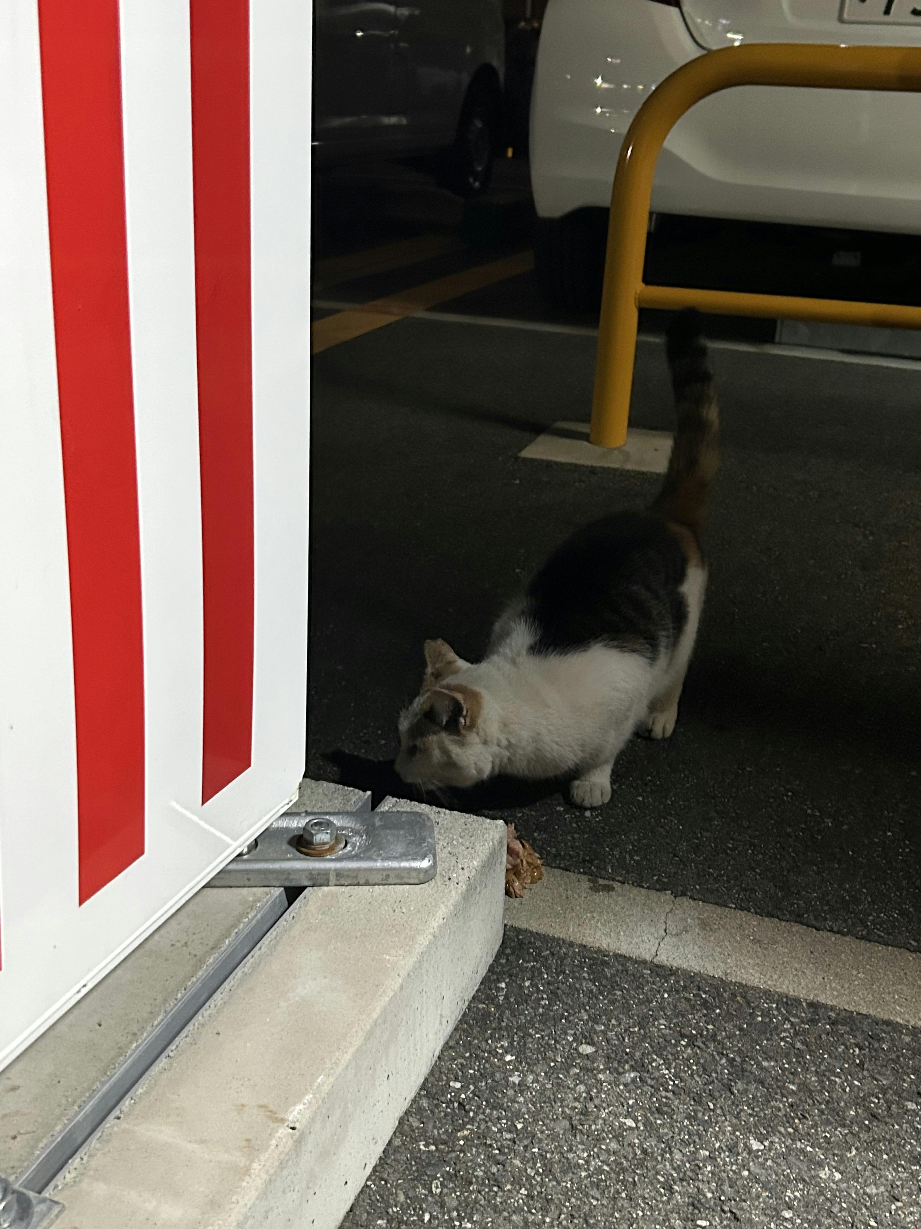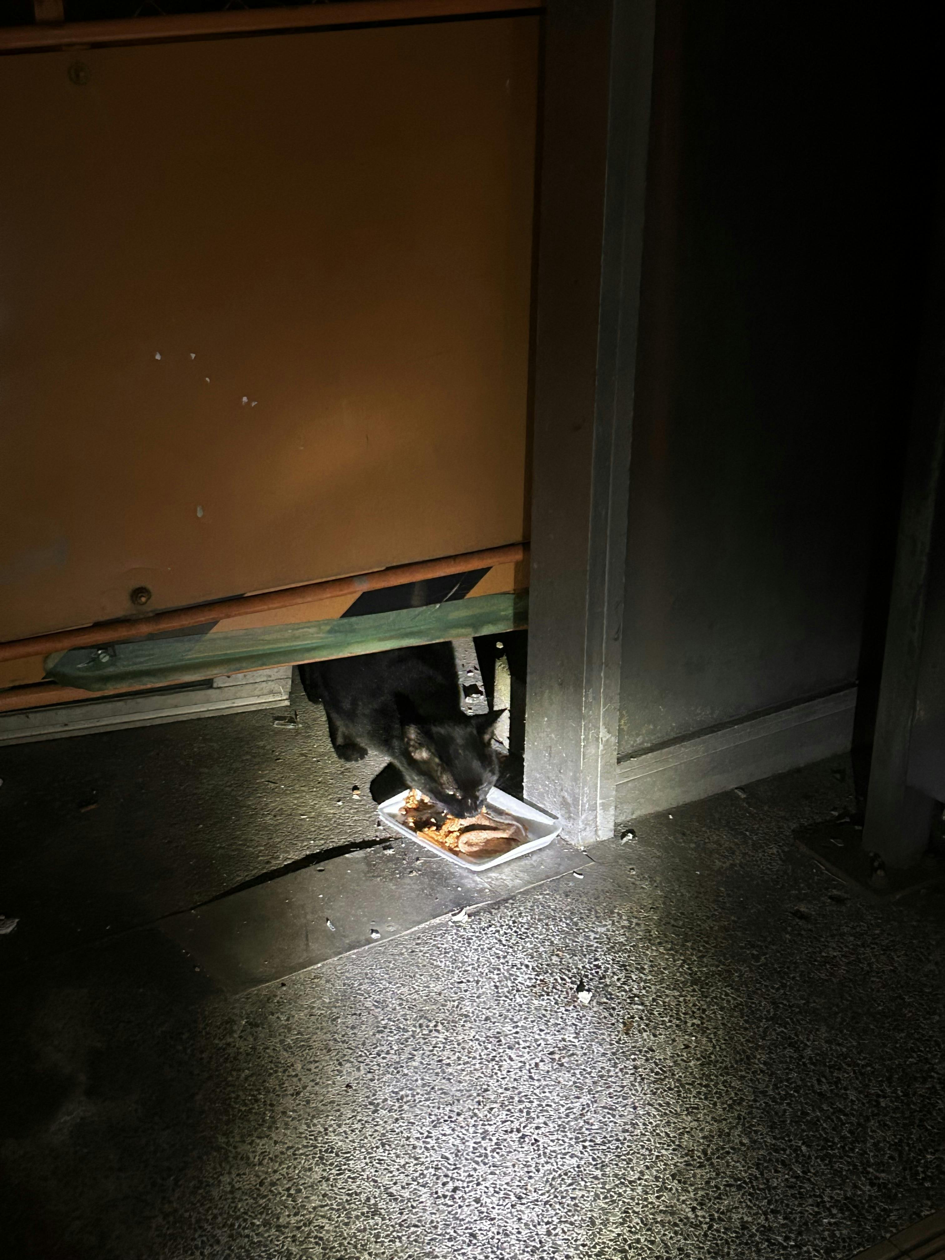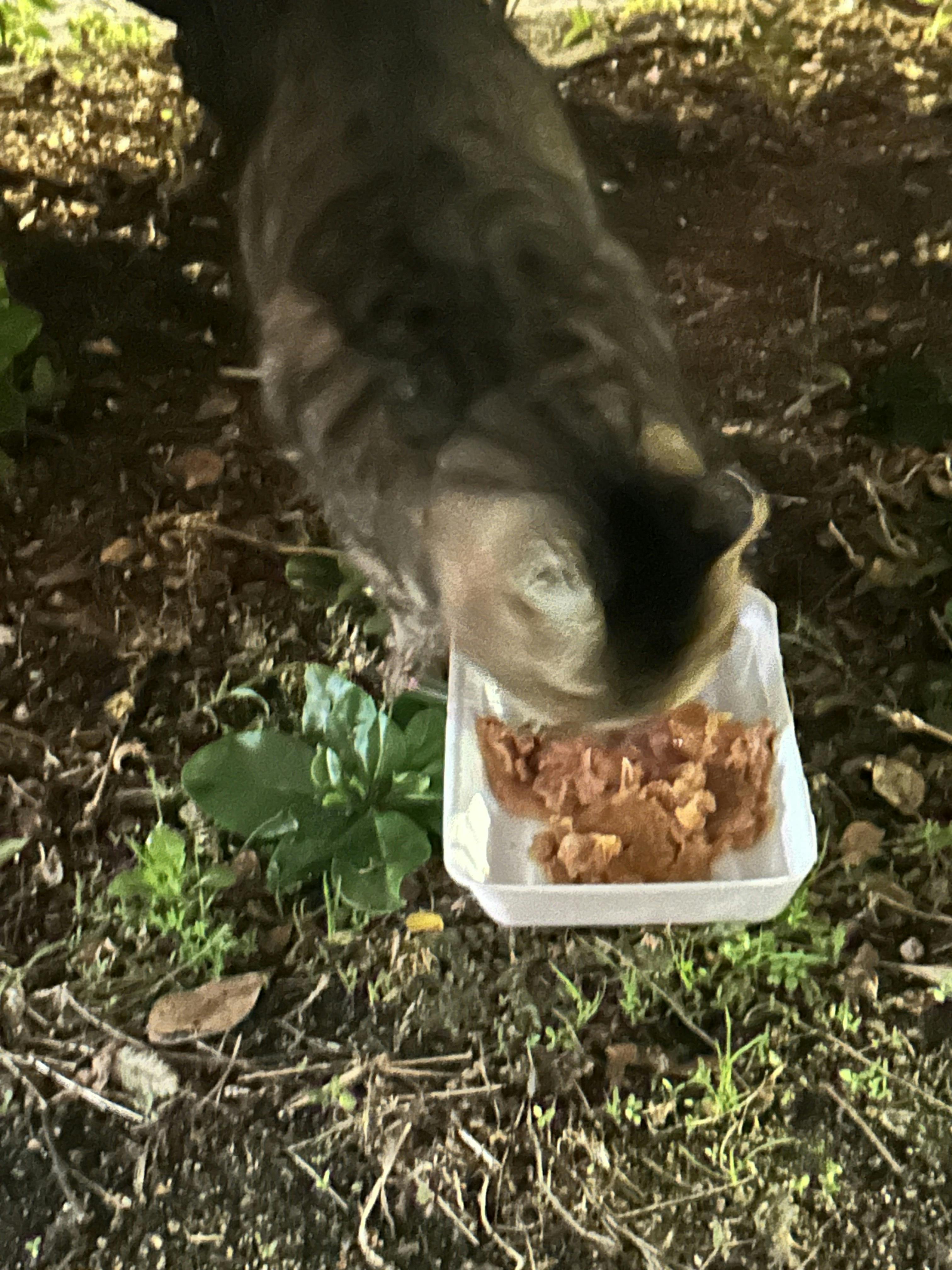 三毛猫ちゃん,食欲すごい。私とオジサンからパウチ カリカリもらってます。