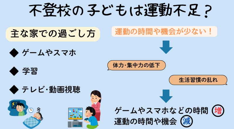 そこで、不登校の子どもたちに運動の楽しさを伝え、継続的に取り組んでもらう機会を提供したいと思い、このプロジェクトを立ち上げることにしました。
