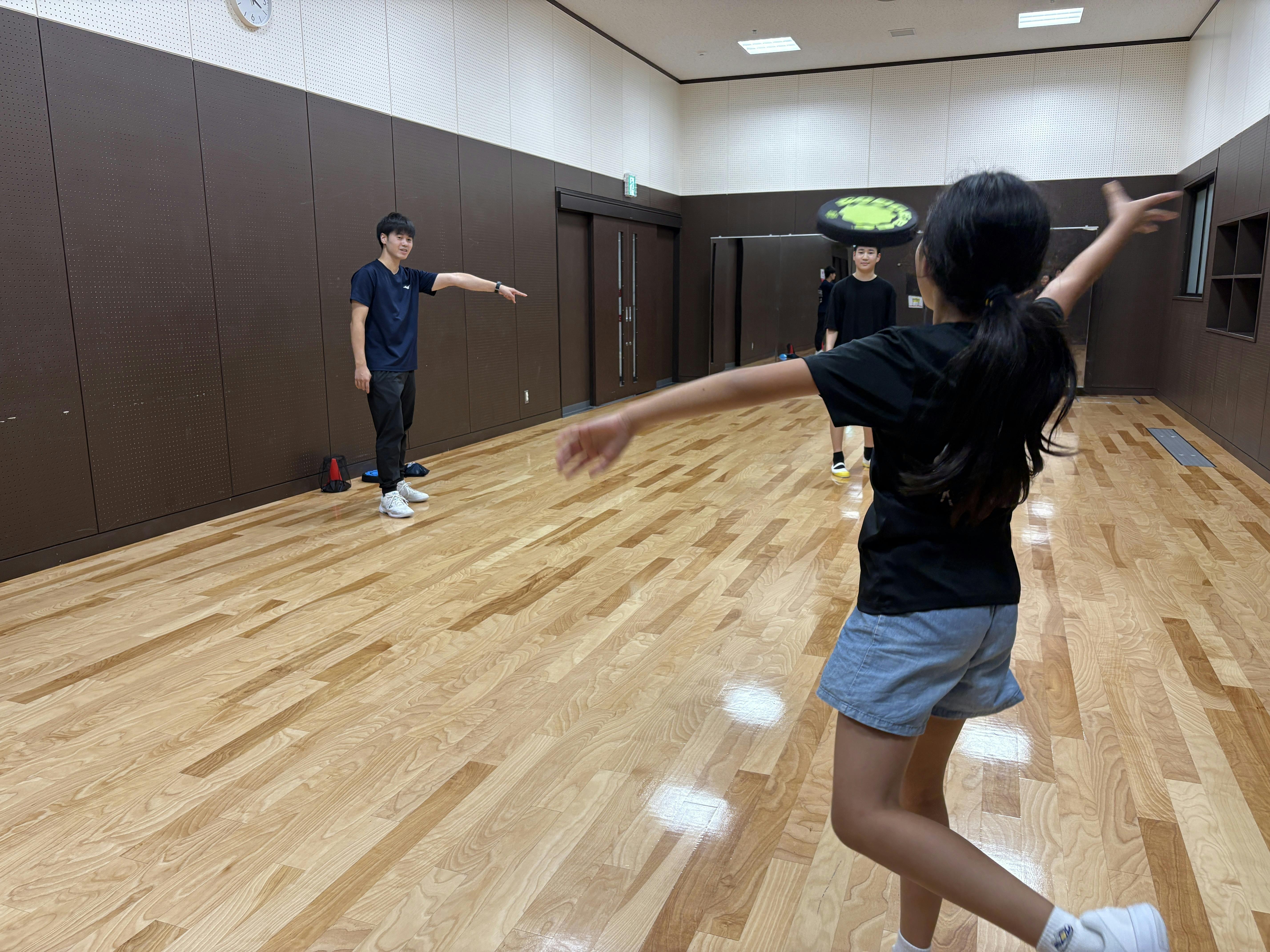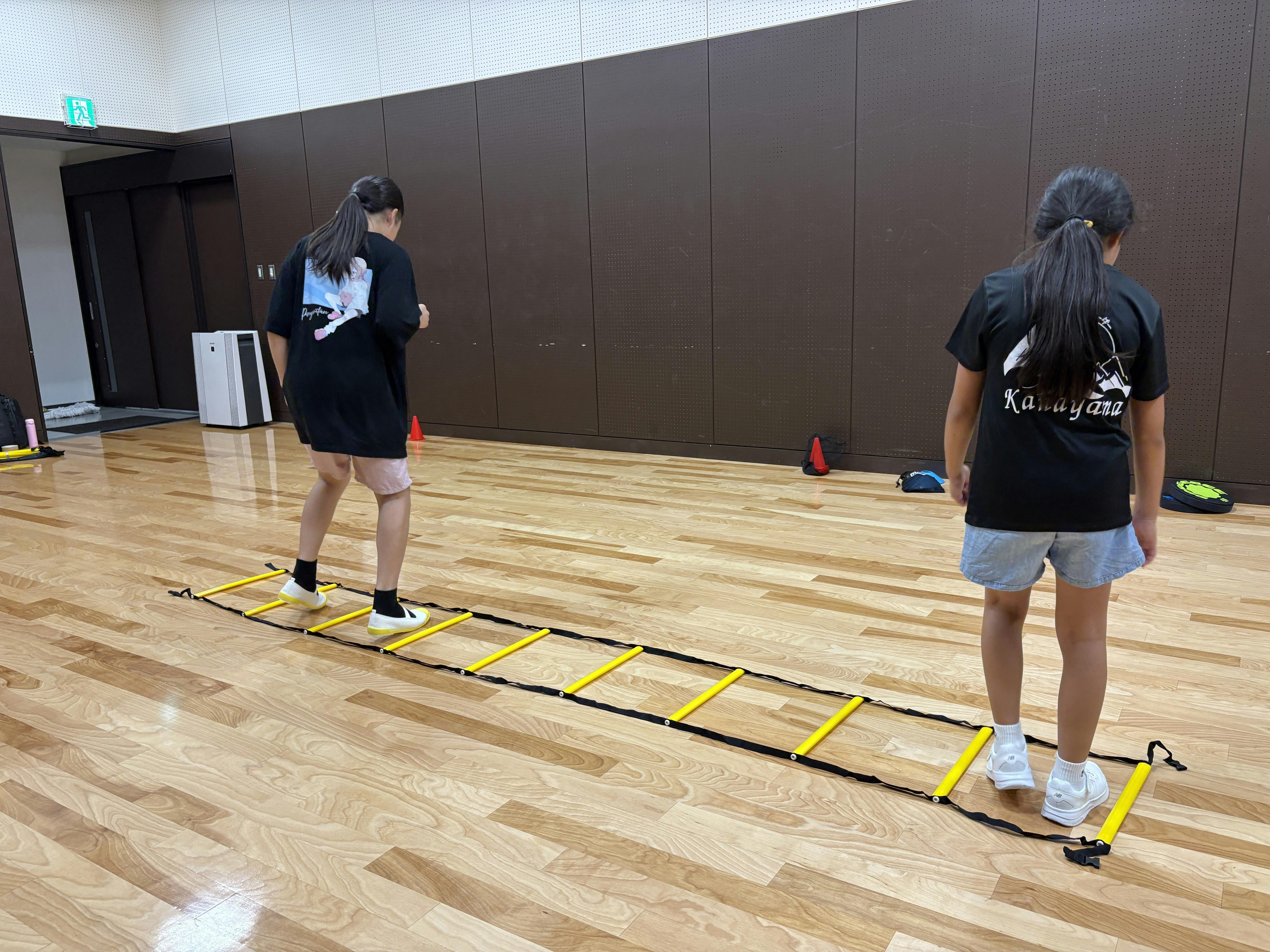 初回は、ラダーやドッチビーなどの様々な運動に楽しく取り組むことができました。