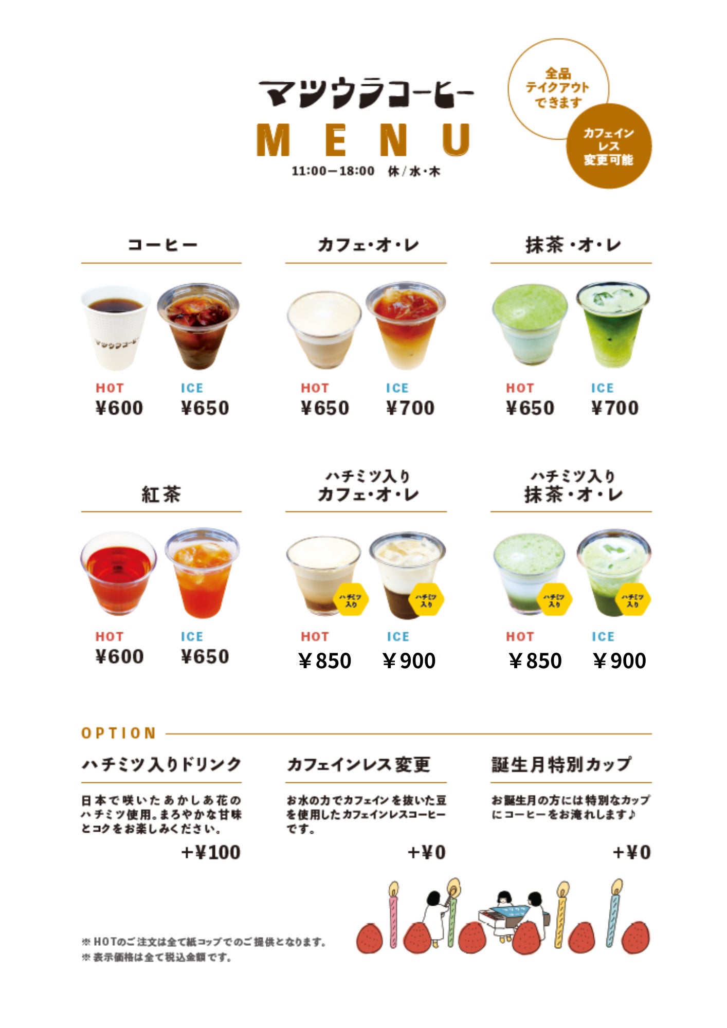 マツウラコーヒーの現メニュー(一部)