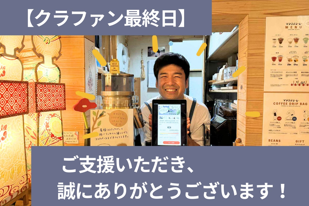 マツウラコーヒーのホットコーヒーに換算すると3000杯を超える!皆さまからのご支援の重みと愛を感じています♪本当にありがとうございます!!!
