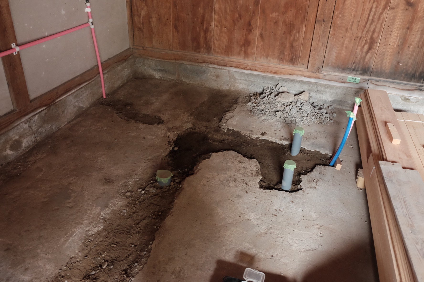 斫っていただいた部分に、水道管が通りました!