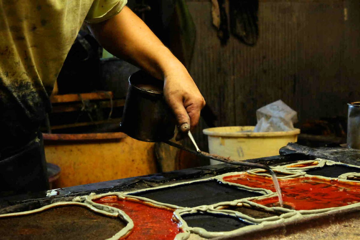 注染染めに使われている糊や染料は自然素材ゆえに、