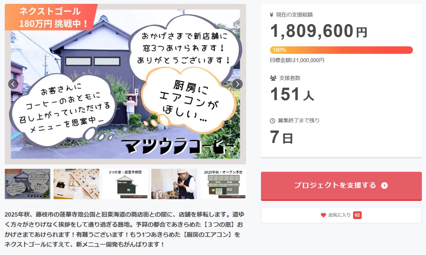 180万円を超えるご支援は、