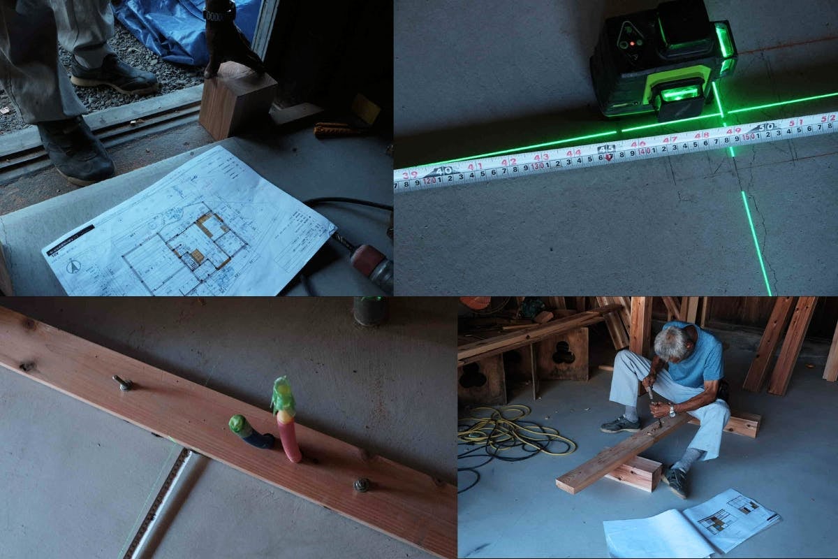地面に描かれた設計図、、寸法や線が好きです