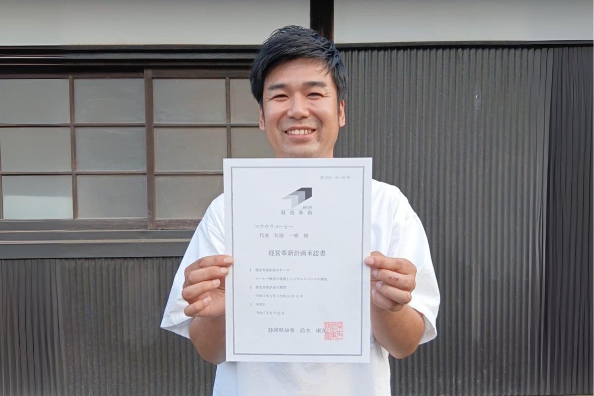 新店舗を準備していく中で、ご相談に伺ったエフドア村松晴義さんや中央会長橋優樹さんを通じて、新たなご縁をいただき、経営革新計画という認証を静岡県よりいただくことができました。新店舗では少人数制にはなりますが、コーヒー教室(珈琲焙煎&ドリップバッグ制作ワークショップ、コーヒー実験室)の開催を定期的に実施できるように準備を進めています。