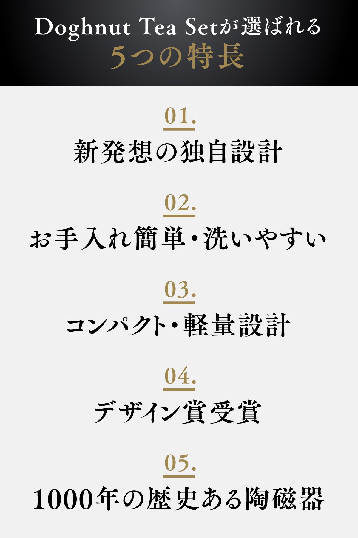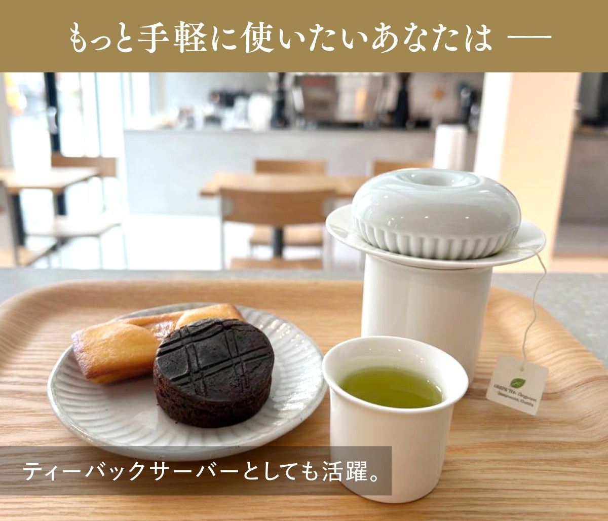 本製品『Doughnut Tea Set』は、海外展示会で出会い、その可能性に強く惹かれた茶器です。従来のお茶好きの方は新しい価値を、お茶に馴染みのなかった世代にも、自然と楽しむ暮らしが提案できる──そんな可能性を感じた製品です。