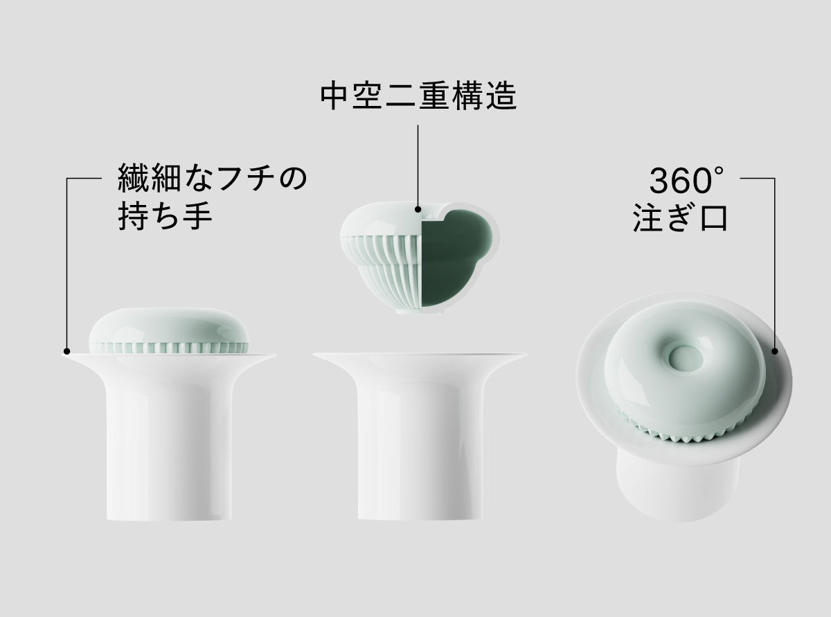 360°どの角度からでも隠れた流出口から美しく滑らかに注げる、新感覚の機能美でお茶タイムをアップグレード。