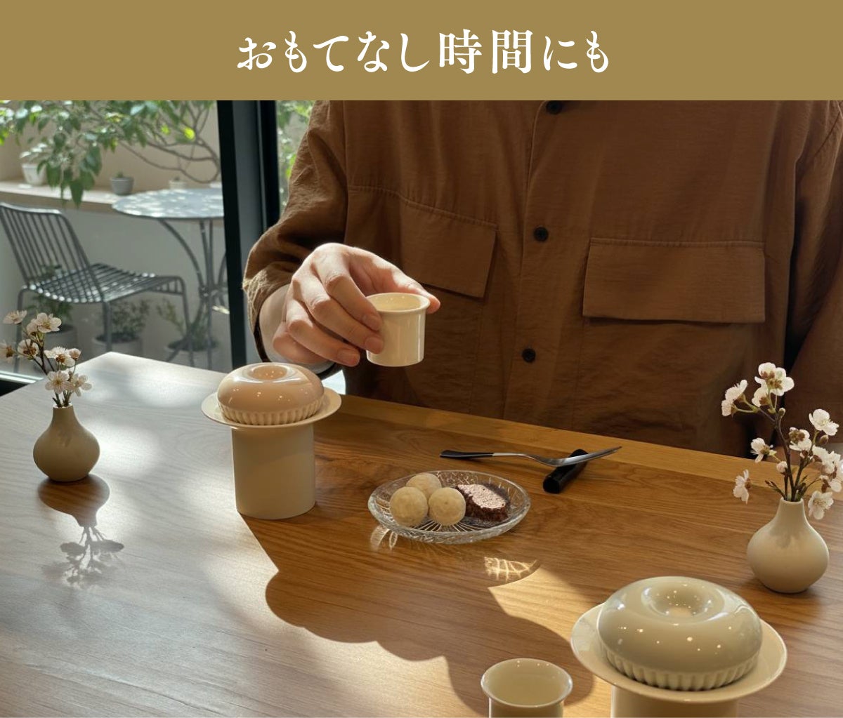 忙しい日常の中でも、急須から流れでるお茶を眺めながら、ゆったりとくつろぐ休息を。まるでカフェのように上質で特別なひとときに変えてくれます。