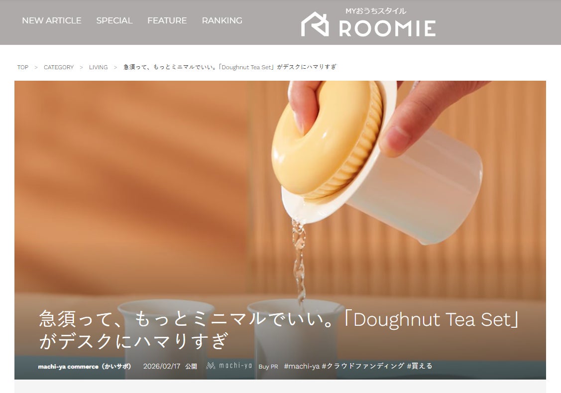 このたび、ライフスタイルメディア ROOMIE(ルーミー) にて、「Doughnut Tea Set」が紹介されましたのでご報告いたします。