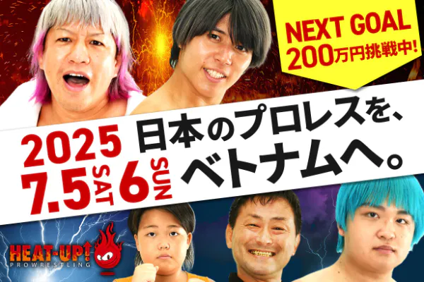 2025/07/03 17:46ご支援頂いた皆様こんにちは!本日目標50万円を達成する事が出来ましたぁぁぁぁぁぁぁぁぁぁぁ!!HEAT-UPに期待していただき心より感謝申し上げます!皆様の期待を背負いしっかり日本のプロレスをベトナム・ダナンで広めて参ります!!さて、いよいよ今週土曜日&日曜日(7月5日&6日)にダナン市日越文化交流フェスティバルが開催されます。プロレスサミット2025は17:00(日本時間19:00)からゴングです!ベトナム・日本・韓国・香港・インド・タイ・シンガポールから選手が集結!シドグエン(ベトナム)、秦野友貴(日本)、バリヤン・アッキ(インド)、JDリー(韓国)が出場するアジアナンバーワンシングルトーナメントを開催!この記念すべき大会の「生ライブ配信リターン」を追加する事が急遽決定!HEAT-UP公式ツイキャスで行います。ライブで見れない方はアーカイブを2週間残しますので、何度でも試聴出来ます!またご支援者様には試合後選手インタビューを録画動画にてお送りします!ぜひこの活動を応援して下さい!ご支援お待ちしております! もっと見る