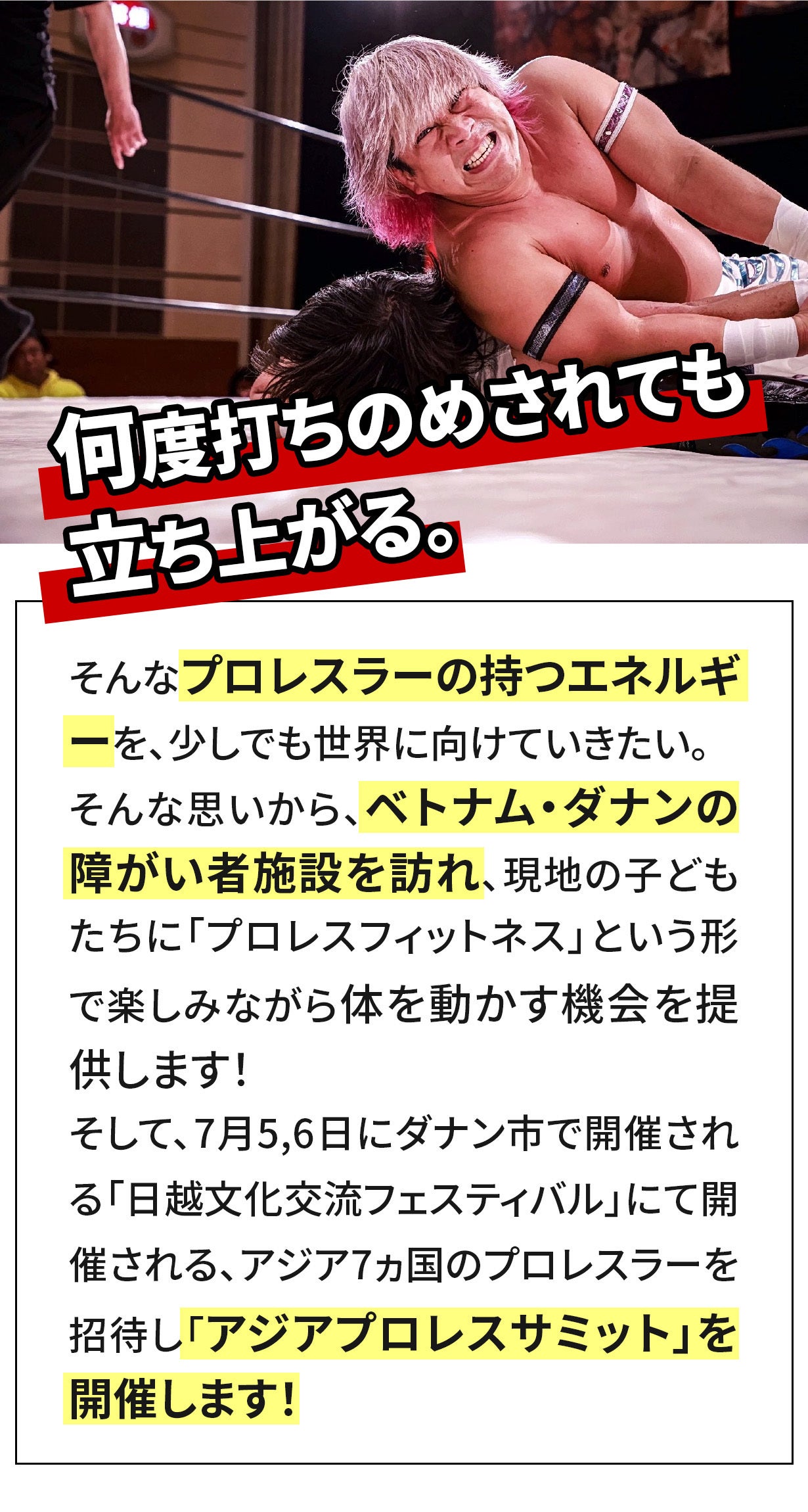 来年のダナン市日越文化交流フェスティバルで本来の日本のプロレスを見せることが出来ます。