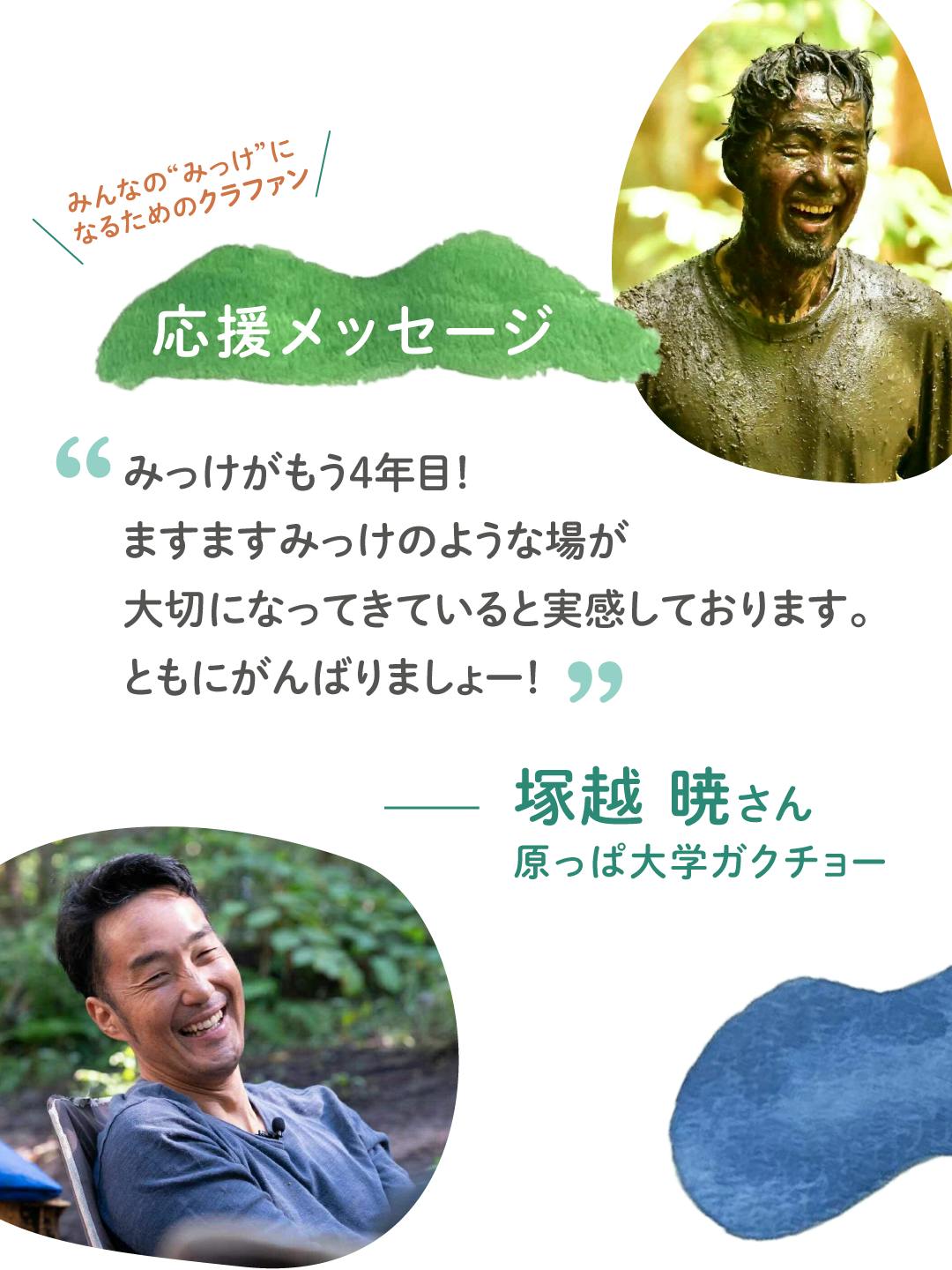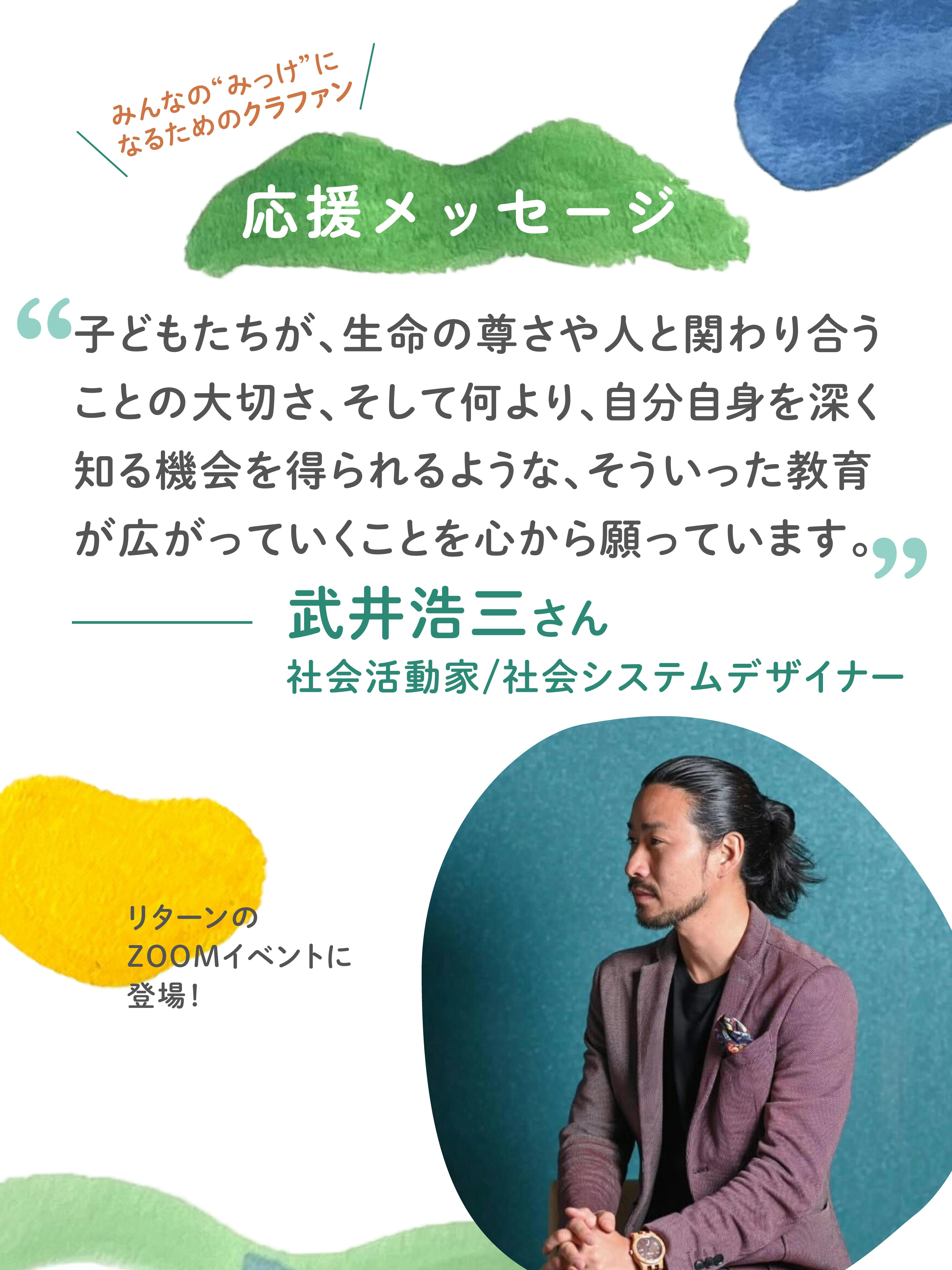 社会活動家 / 社会システムデザイナーの武井浩三さん・原っぱ大学ガクちょーの塚越 暁さん・環境アクティビストの酒井功雄さんから応援メッセージをいただきました!