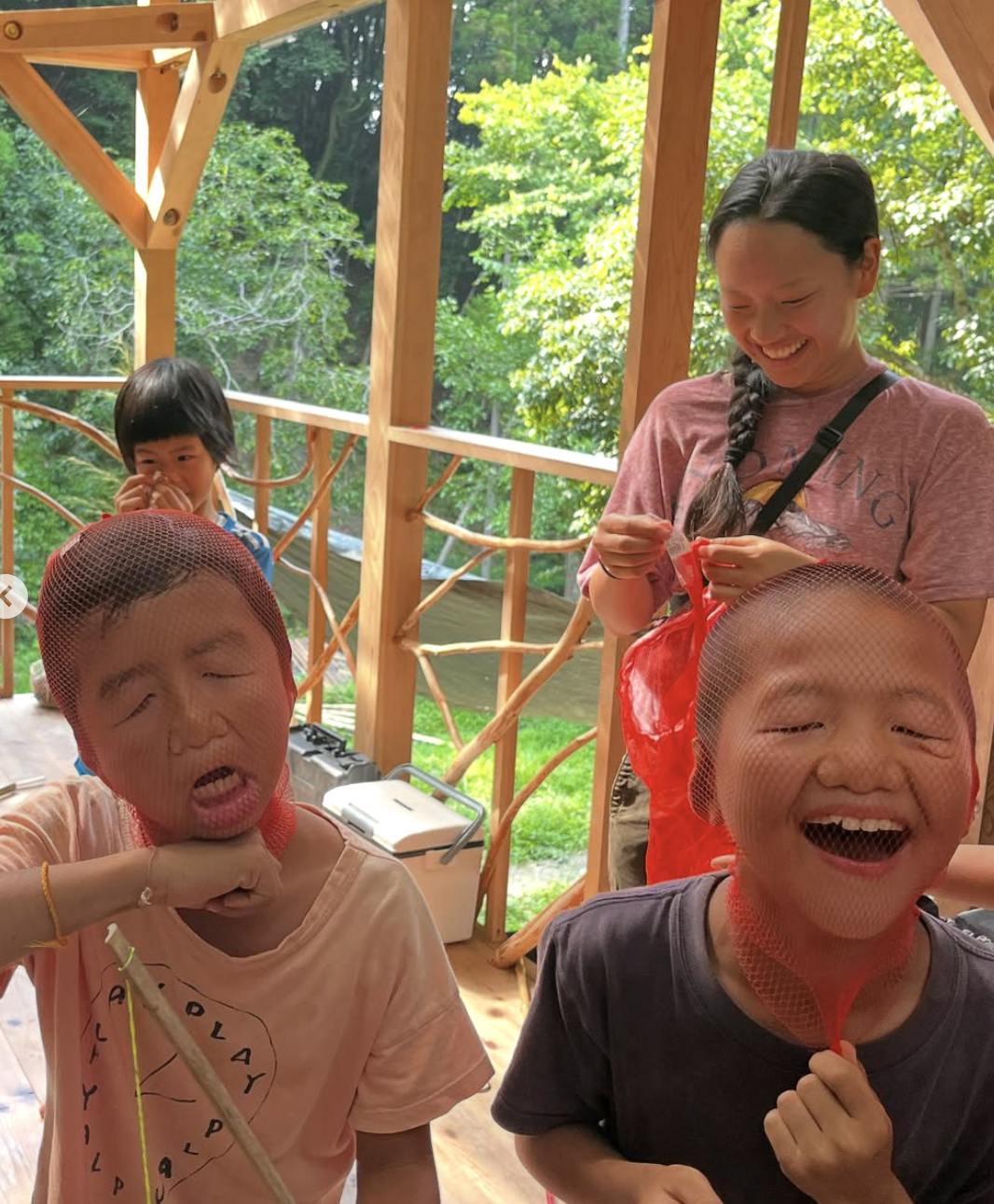 ◉メンターが何かに使えるかなと家で集め続けた卵やみかんを入れていたネット。夏休みに昆虫採集に使いたい子たちに手渡すと、すぐに頭に被りはじめた。顔が、誰かわからない。面白すぎる。