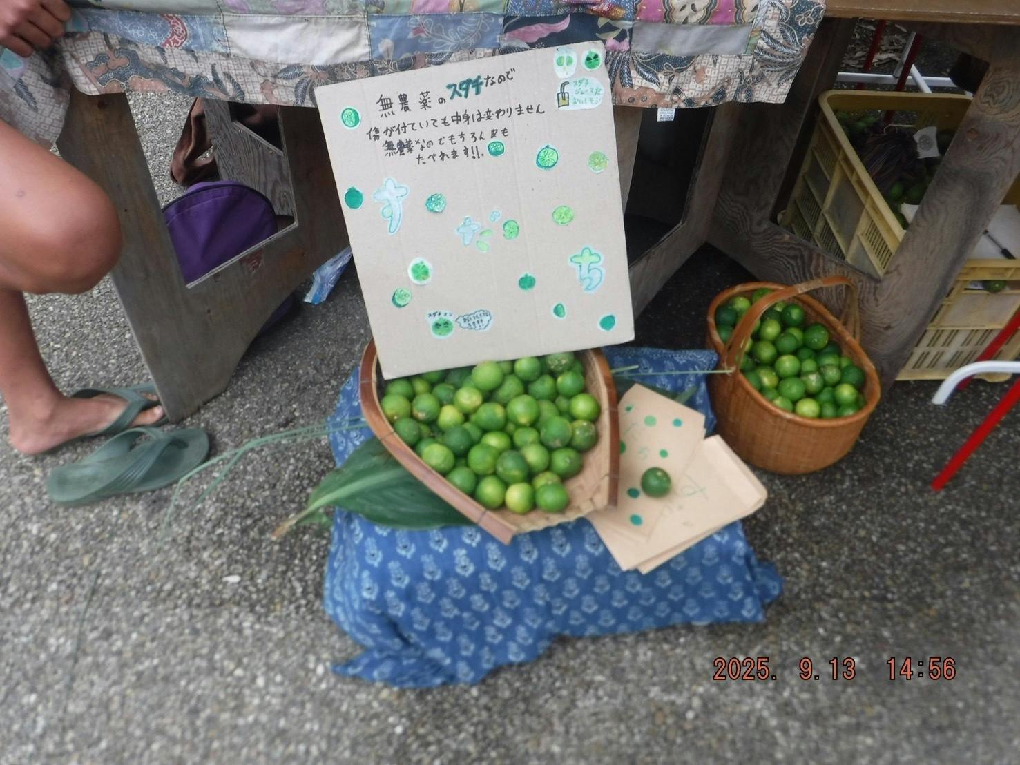子どもたちが自分たちで収穫した無農薬のすだちを販売しました。値段や詰め放題のルールを工夫したり、その場で包装をつくったり、時には物々交換をしたりと、お店の方やお客さんとのやりとりから学びがあふれる時間となりました。売れ残りを地域の飲食店に届け、代わりにジュースをいただくなど、人と人のつながりを実感する場面もありました。
