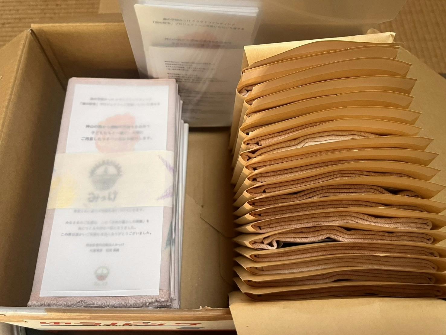 クラウドファンディングのリターンとしてお約束していた「びわの葉染めの手ぬぐいとTシャツ」を、25名の支援者の皆さまに第一弾として発送いたしました。